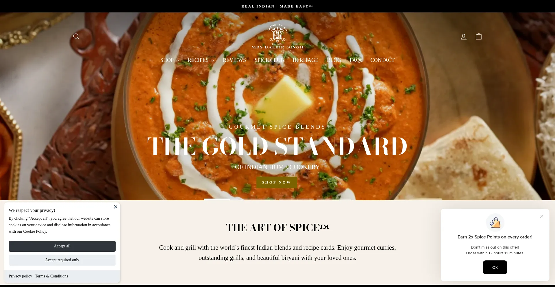 The finest artisan spice blends, freshly roasted, ground, and mixed in small batches. Authentic flavours from the pioneers of Indian home cookery.