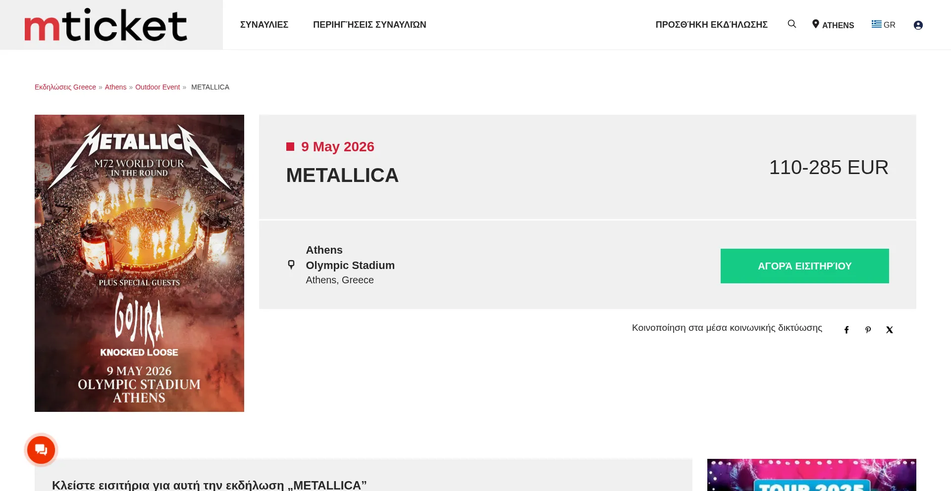 METALLICA - Athens ᐉ Bilet na koncert Kup na 9 May 2026 ᐉ hu.mticket.eu