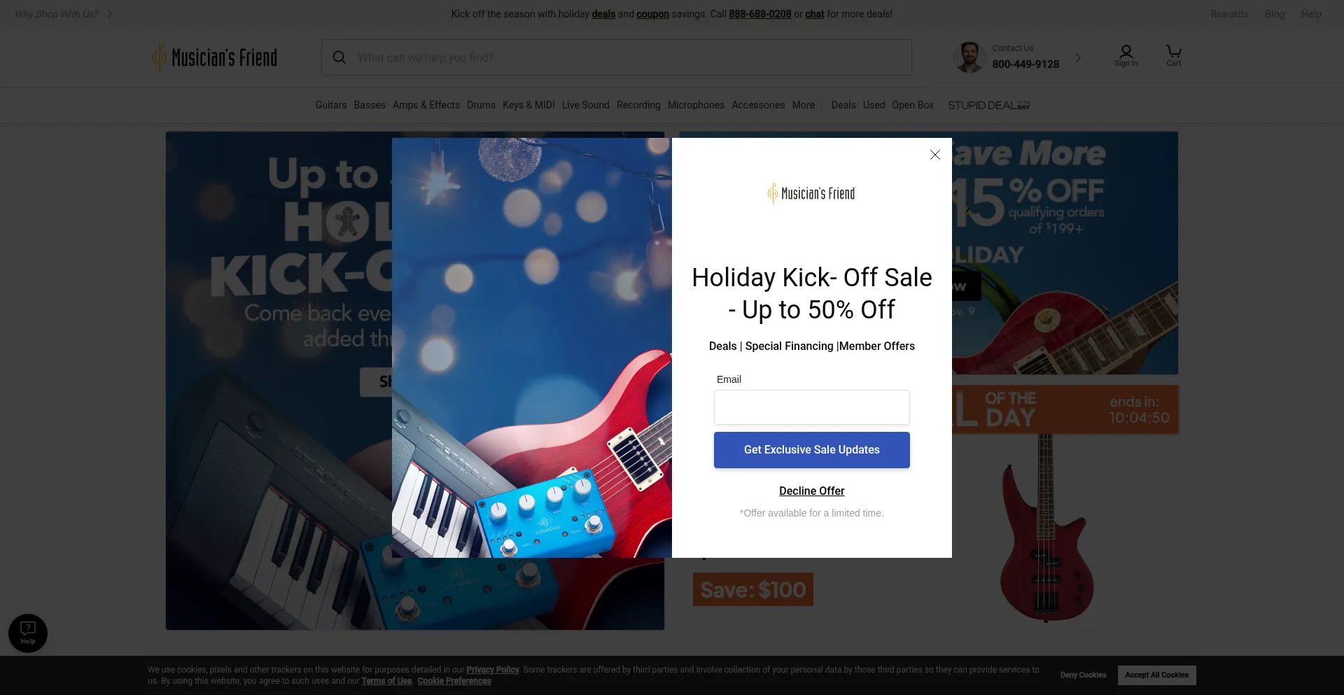 Die Website implementiert Cookie-Zustimmungsmechanismen in Compliance mit Datenschutzregulierungen wie DSGVO oder CCPA. Dies demonstriert, dass musiciansfriend.com Datenschutzstandards einhält und Benutzern Kontrolle über persönliche Datenerfassungspraktiken bietet.