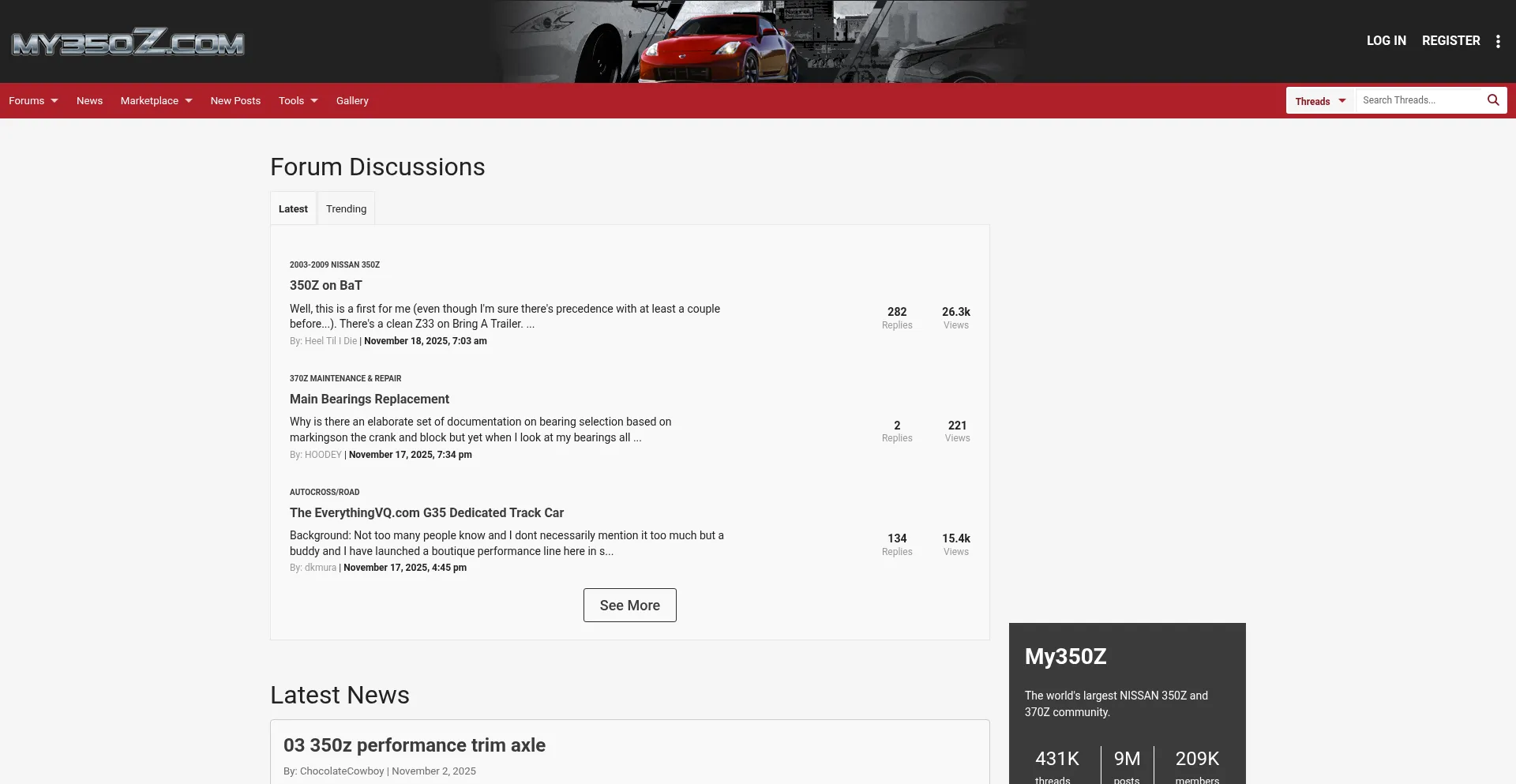 Largest online forum for the Nissan 350Z and 370Z.