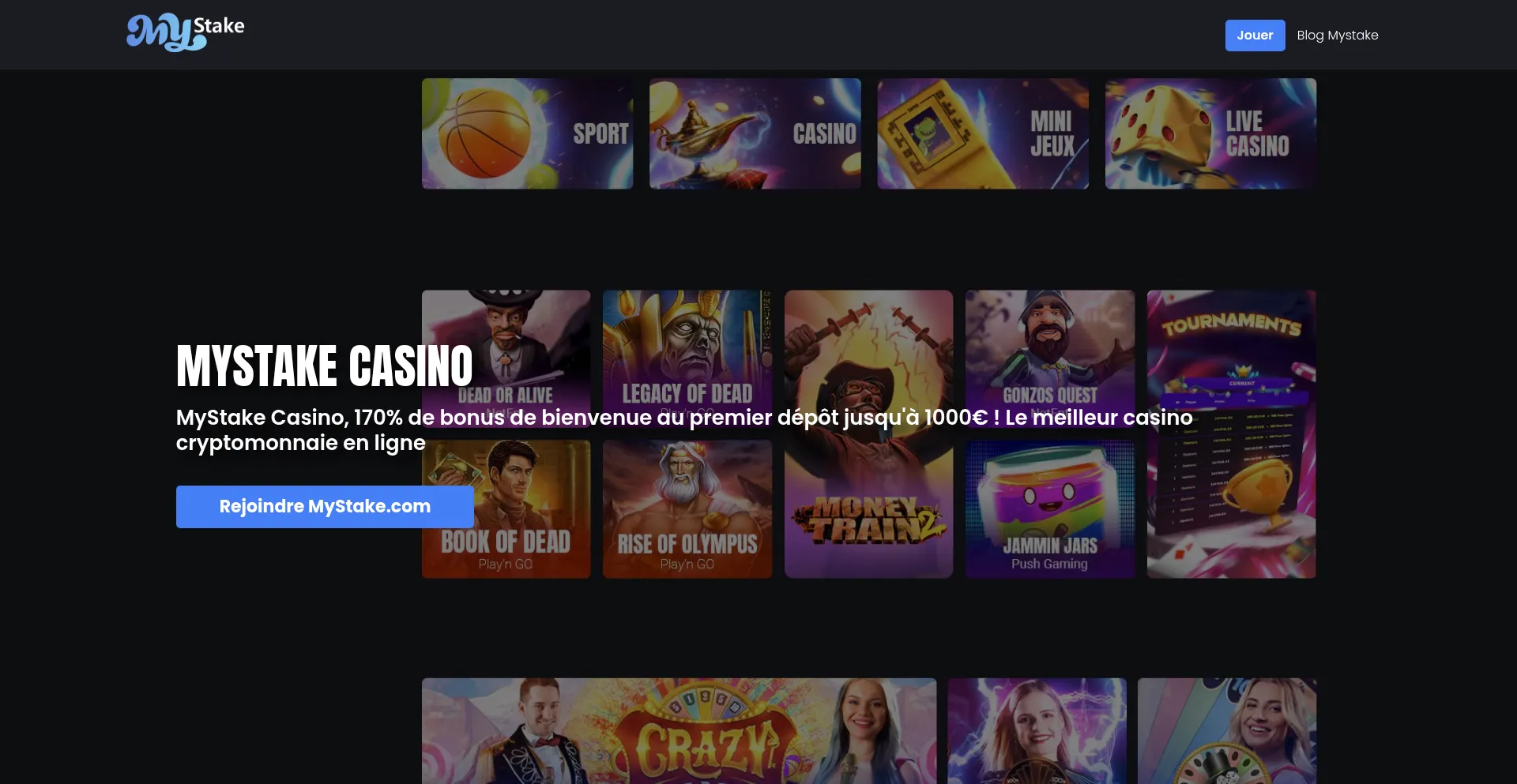 Inscrivez-vous sur MyStake Casino et obtenez 170% de bonus de bienvenue au premier dépôt jusqu'à 1000€ ! Le meilleur casino en ligne.​