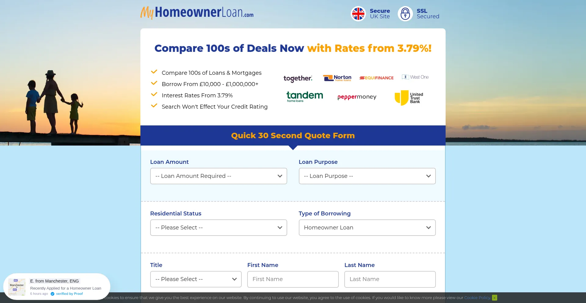 Search 100s of homeowner loans with interest rates starting from as little as 3.79%.
