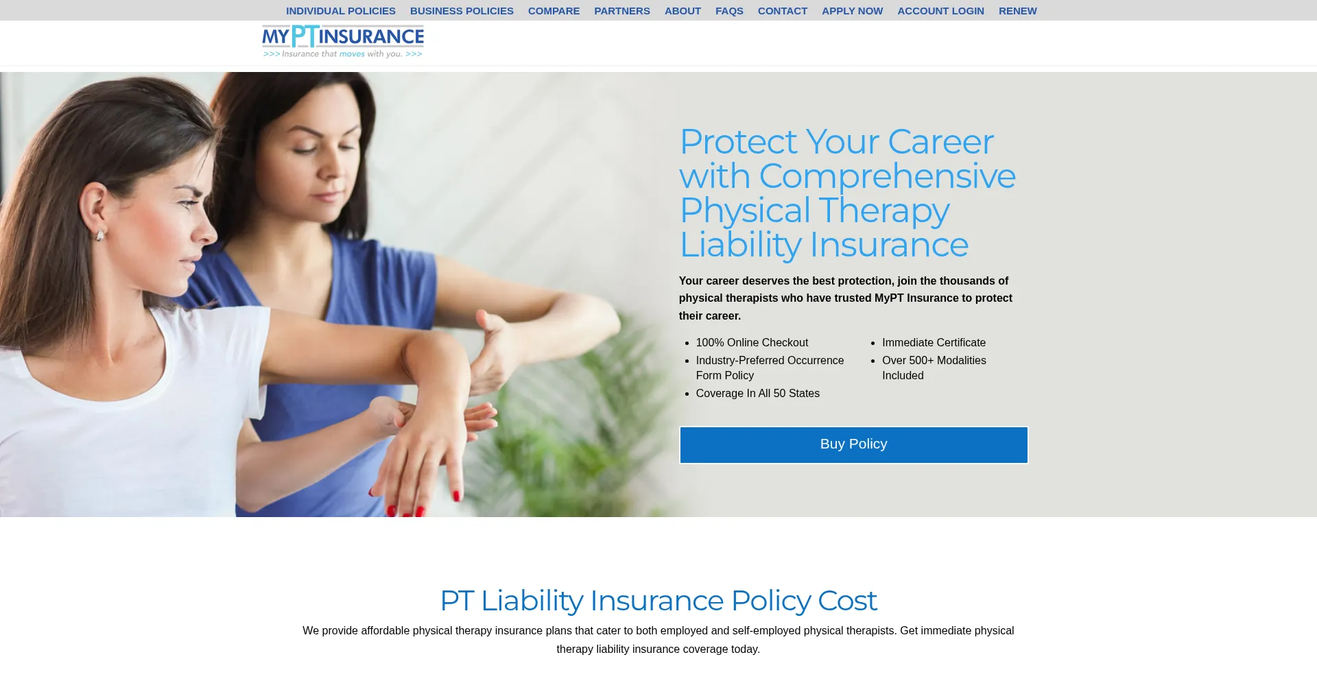 Physical therapist liability insurance designed to fit your needs. We offer the best rates on PT liability insurance. Get instant coverage in less than 3 minutes with our online...