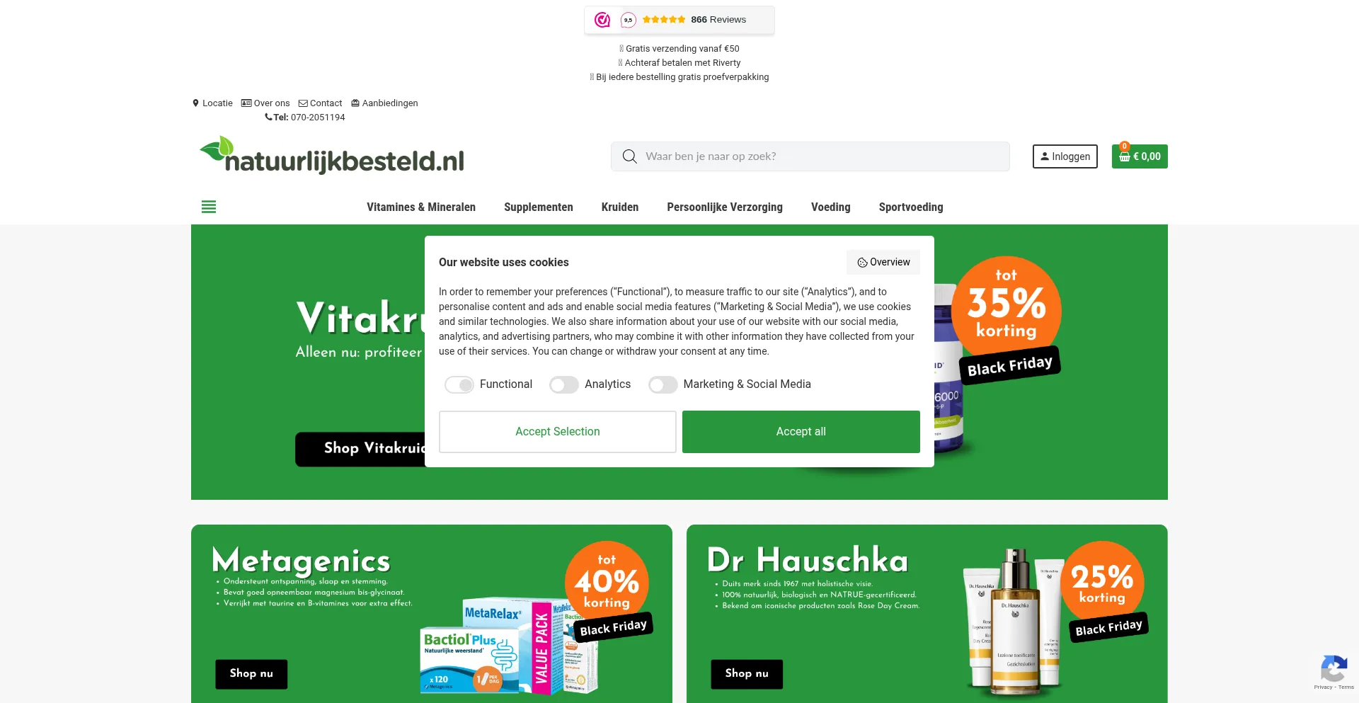 Die Website implementiert Cookie-Zustimmungsmechanismen in Compliance mit Datenschutzregulierungen wie DSGVO oder CCPA. Dies demonstriert, dass natuurlijkbesteld.nl Datenschutzstandards einhält und Benutzern Kontrolle über persönliche Datenerfassungspraktiken bietet.