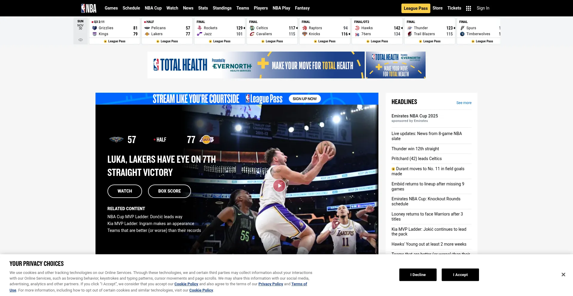 Follow the action on NBA scores, schedules, stats, news, teams, and players. Buy tickets or watch the games anywhere with NBA League Pass.