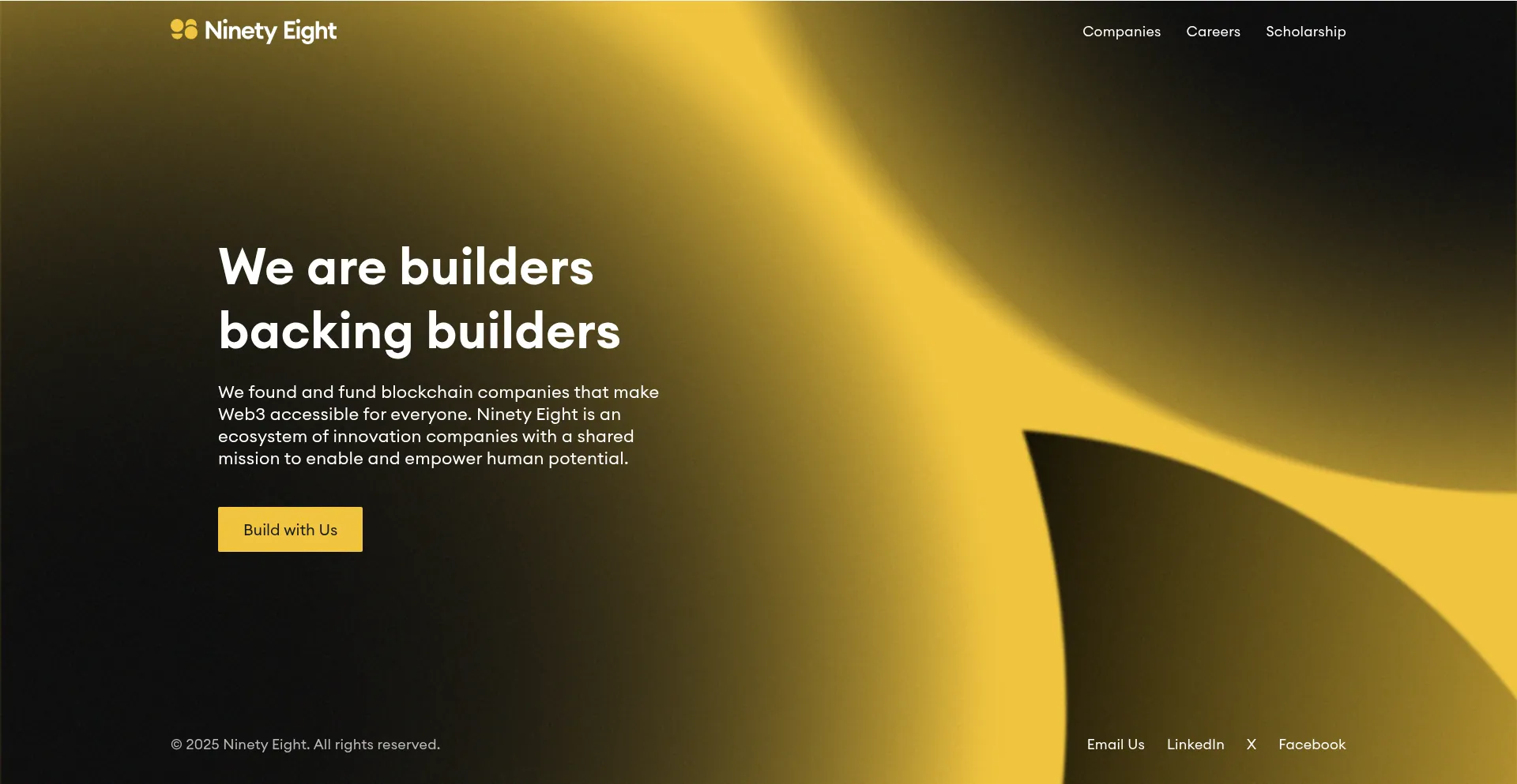 We found and fund blockchain companies that make Web3 accessible for everyone. Ninety Eight is an ecosystem of innovation companies with a shared mission to enable and empower h...