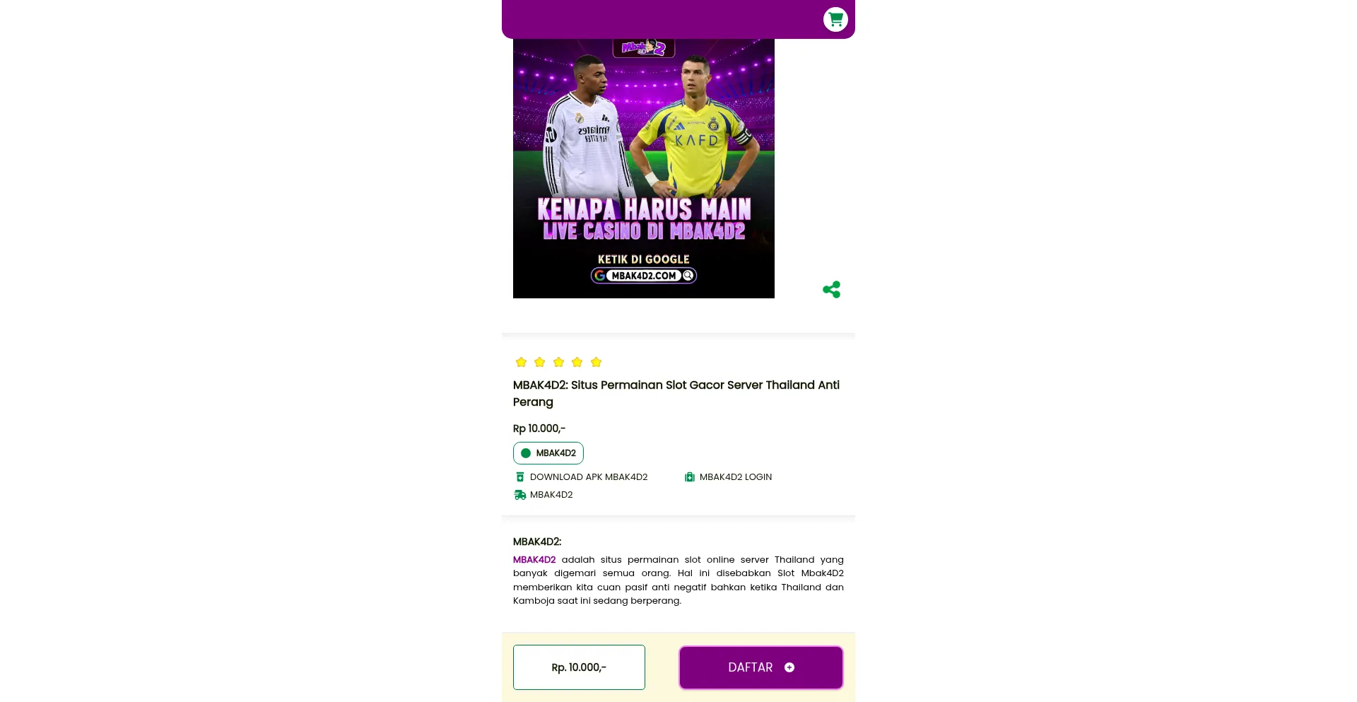 MBAK4D2 adalah situs permainan slot online server Thailand yang banyak digemari semua orang. Hal ini disebabkan Slot Mbak4D2 memberikan kita cuan pasif anti negatif bahkan ketik...