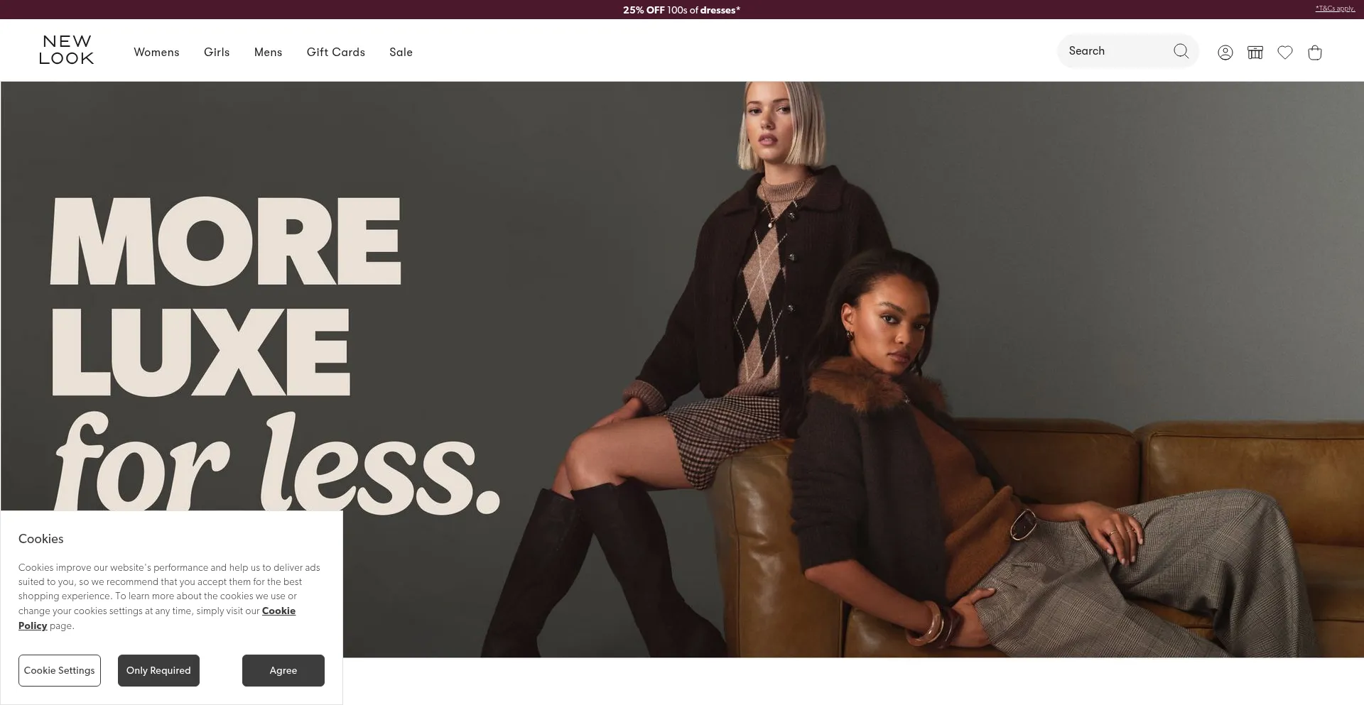 Die Website implementiert Cookie-Zustimmungsmechanismen in Compliance mit Datenschutzregulierungen wie DSGVO oder CCPA. Dies demonstriert, dass newlook.com Datenschutzstandards einhält und Benutzern Kontrolle über persönliche Datenerfassungspraktiken bietet.