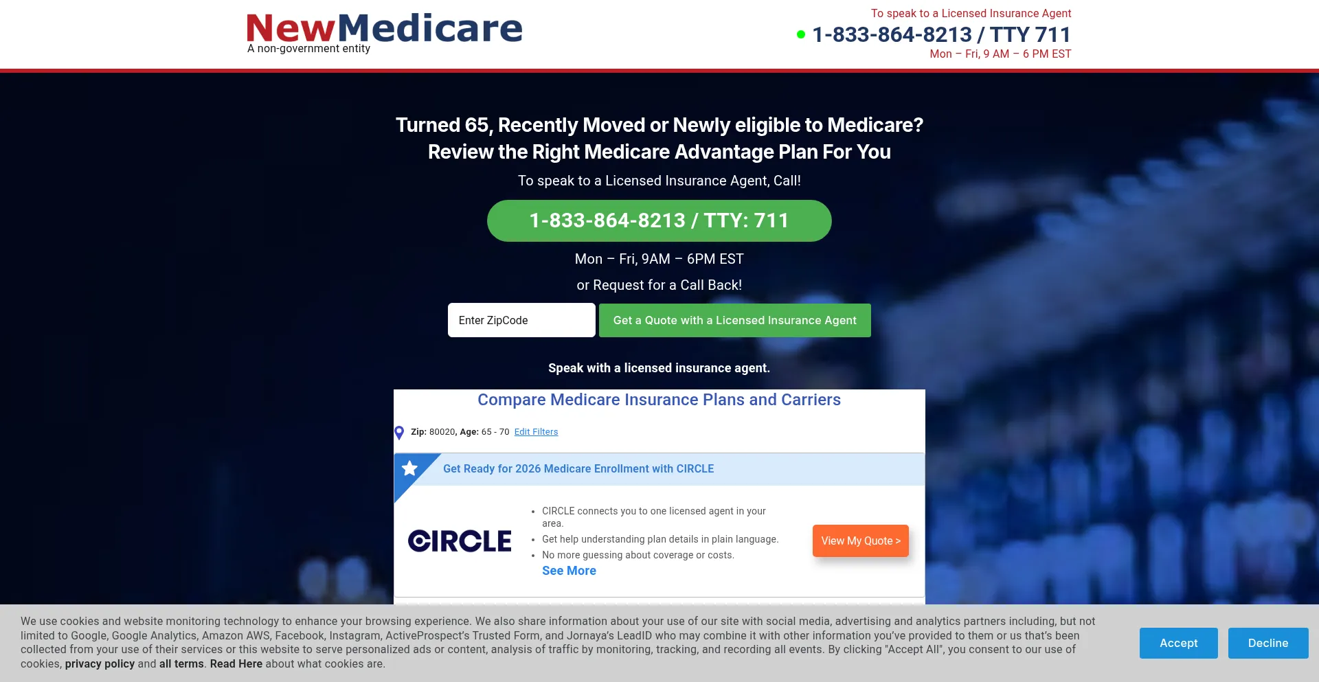 Die Website implementiert Cookie-Zustimmungsmechanismen in Compliance mit Datenschutzregulierungen wie DSGVO oder CCPA. Dies demonstriert, dass newmedicare.com Datenschutzstandards einhält und Benutzern Kontrolle über persönliche Datenerfassungspraktiken bietet.