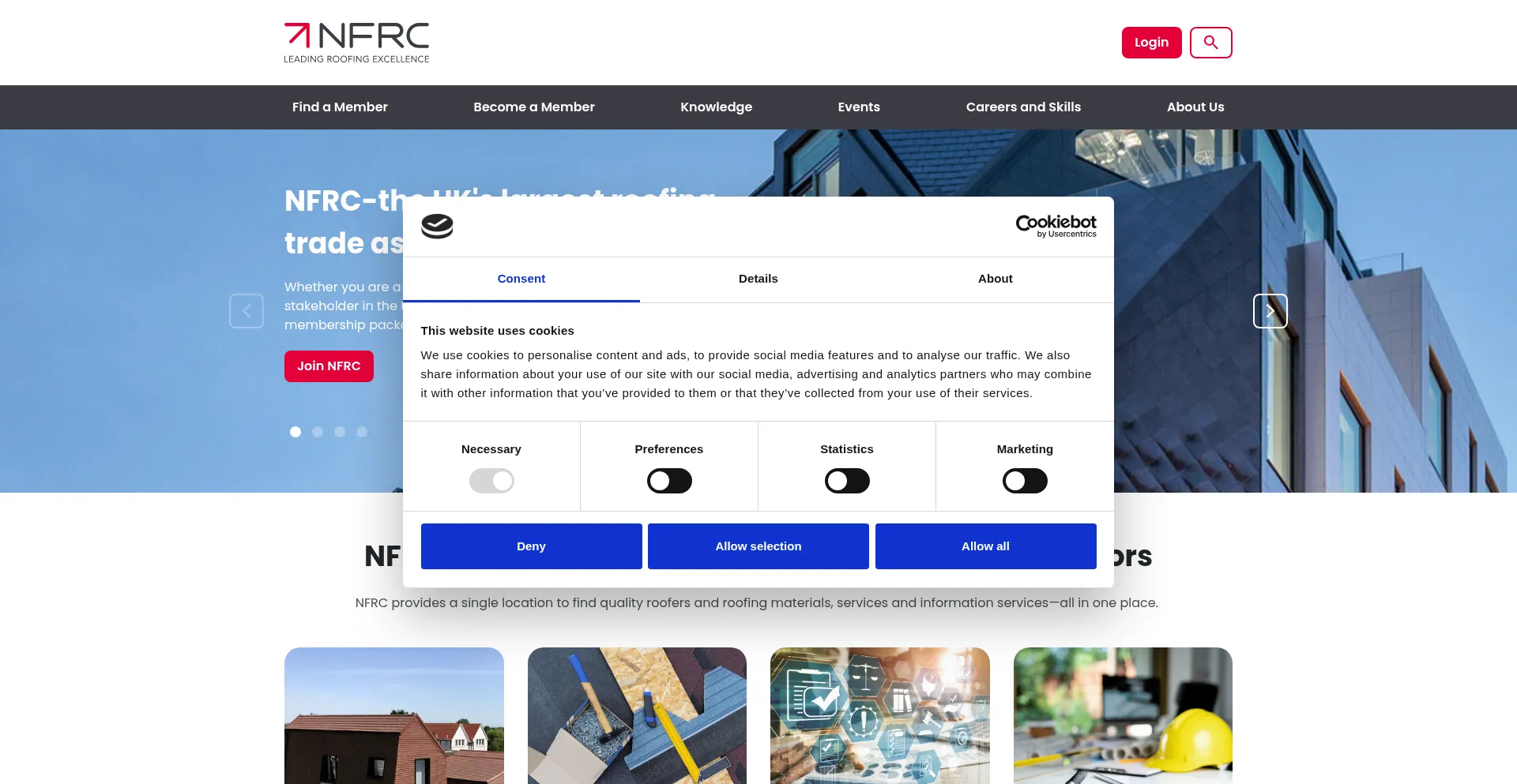 NFRC is the UK's leading roofing association. Become a member, find a roofer, roofing supplies and services, or browse roofing careers services.