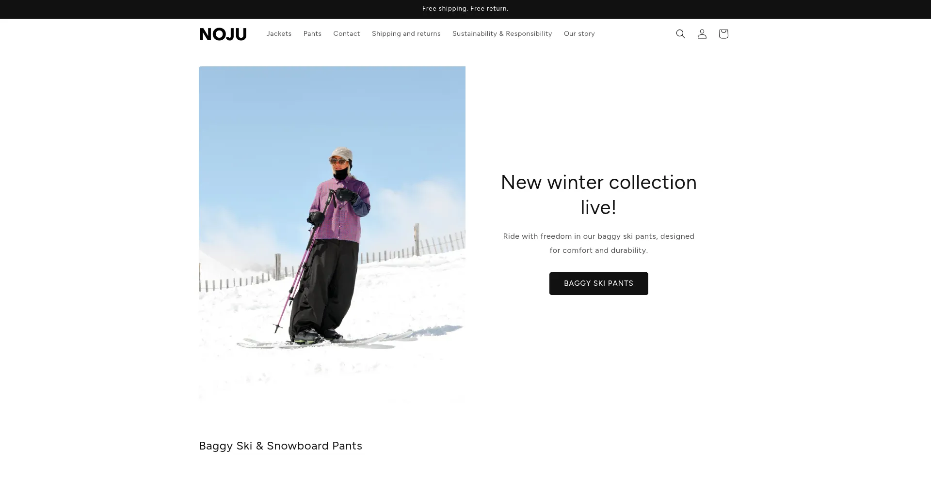 NOJU is a Swedish outerwear brand specializing in baggy ski and snowboard clothes, designed for comfort and freedom on the slopes.