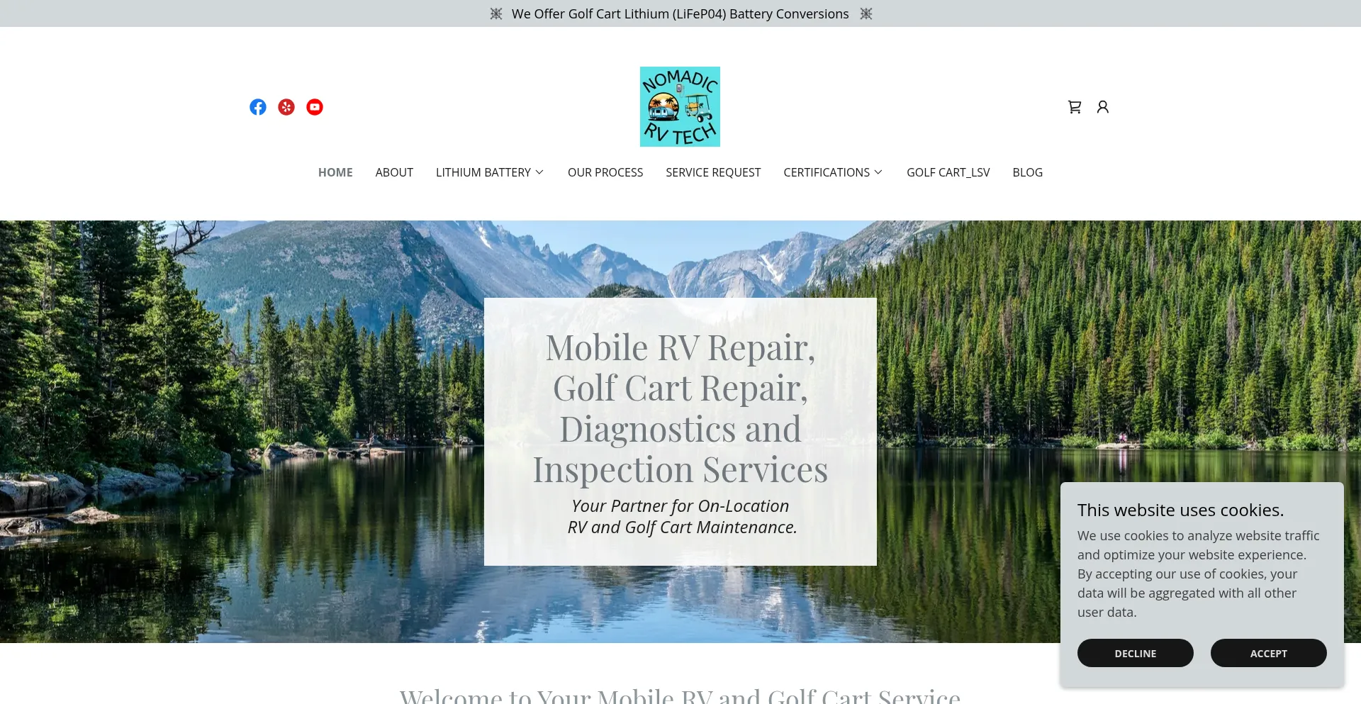 nomadicrvtech.com www.googletagmanager.com csp.secureserver.net cdn.poynt.net d2r4erd6f6ydft.cloudfront.net img1.wsimg.com pagolfcartworld.com www.yelp.com connect.facebook.net www.google-analytics.com +6 mehr