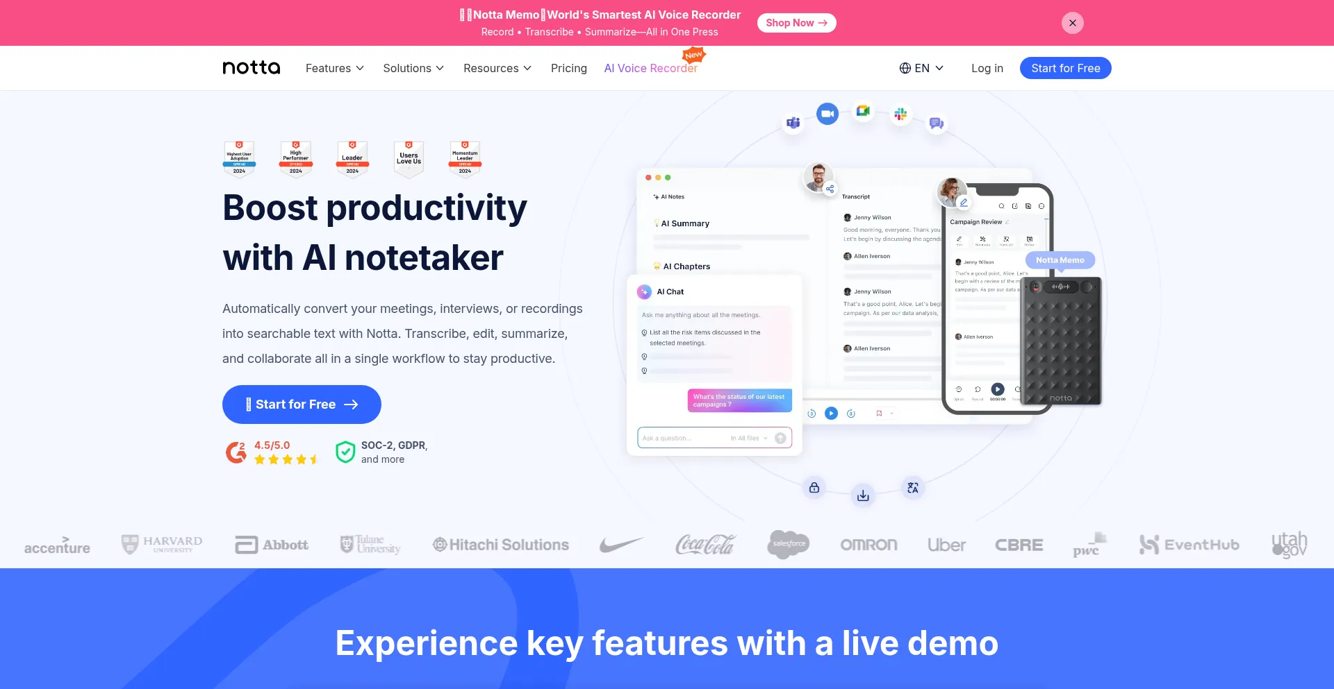 Automatically transcribe and summarize your meetings, interviews, or recordings into searchable text with Notta. Start for Free.