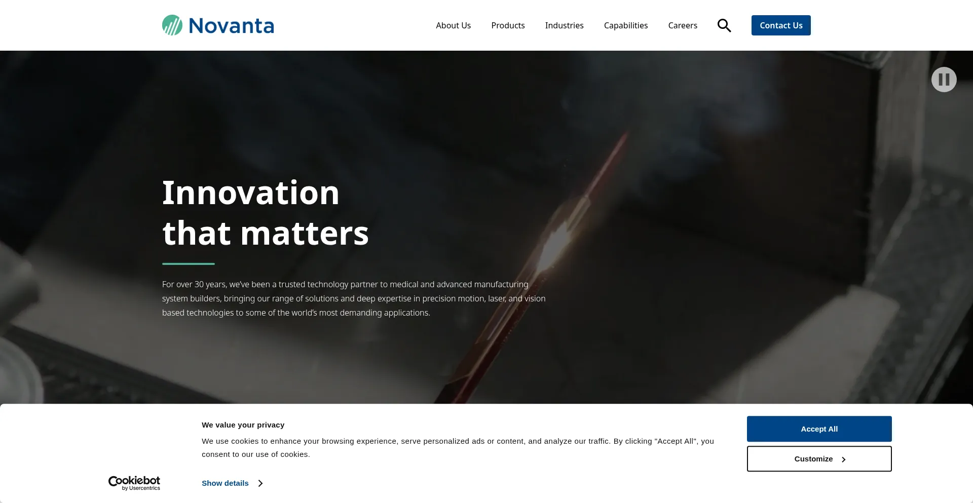 Die Website implementiert Cookie-Zustimmungsmechanismen in Compliance mit Datenschutzregulierungen wie DSGVO oder CCPA. Dies demonstriert, dass novanta.com Datenschutzstandards einhält und Benutzern Kontrolle über persönliche Datenerfassungspraktiken bietet.