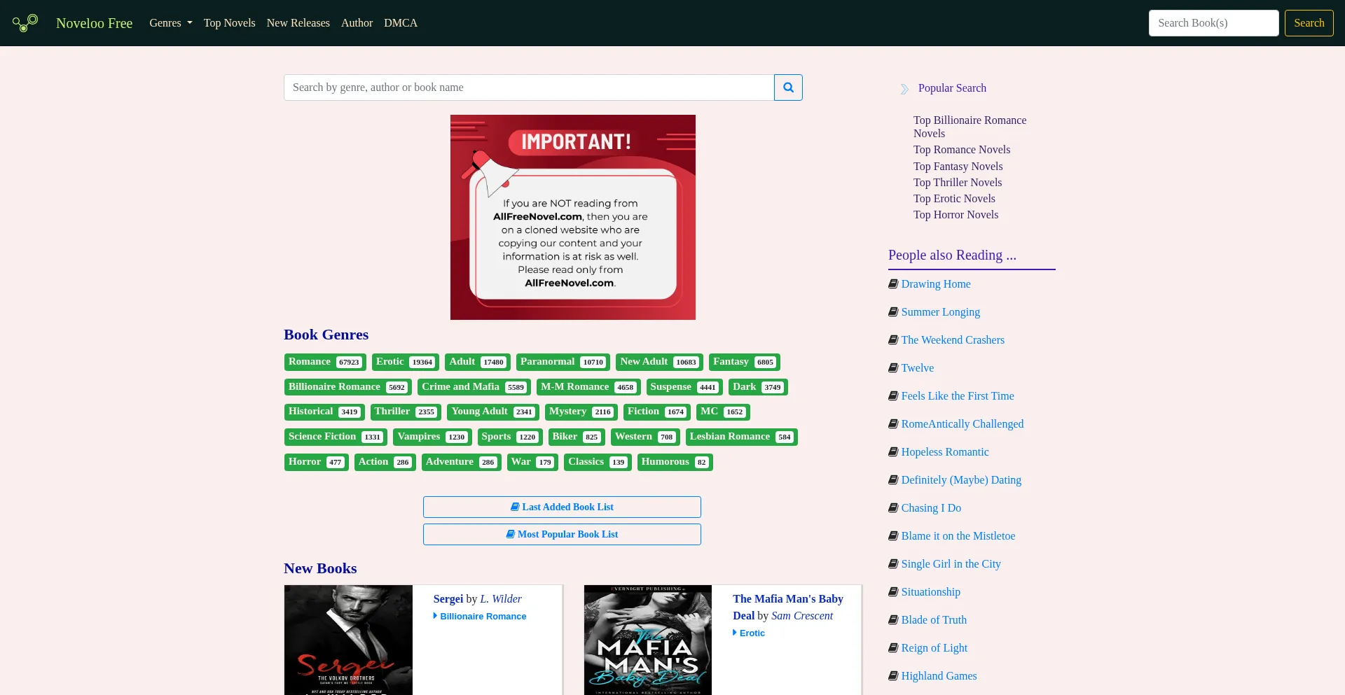 NovelooFree offers users to read or listen complete novels/books online for free. Genres include Romance, Billionaire Romance, Fantasy, Horror, Thriller and more
