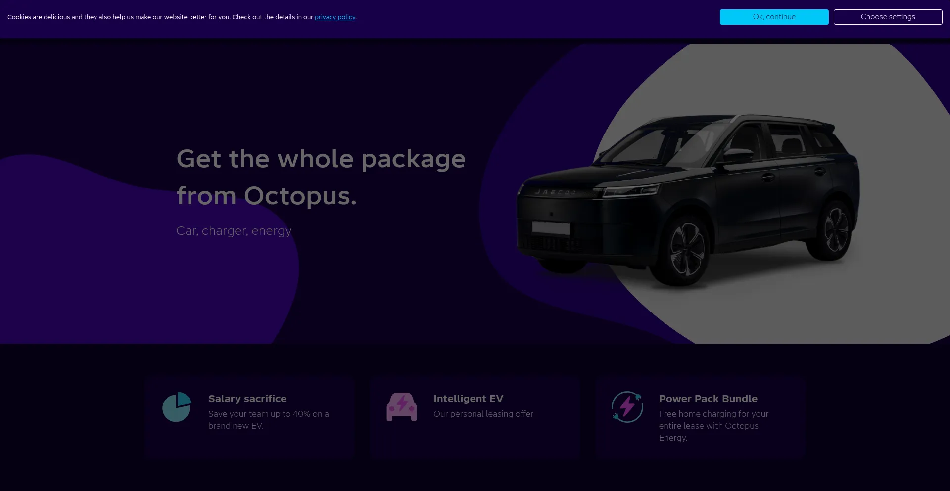 Octopus Electric Vehicles - electric vehicle leasing for personal, business and salary sacrifice including charging and cheap renewable electricity.