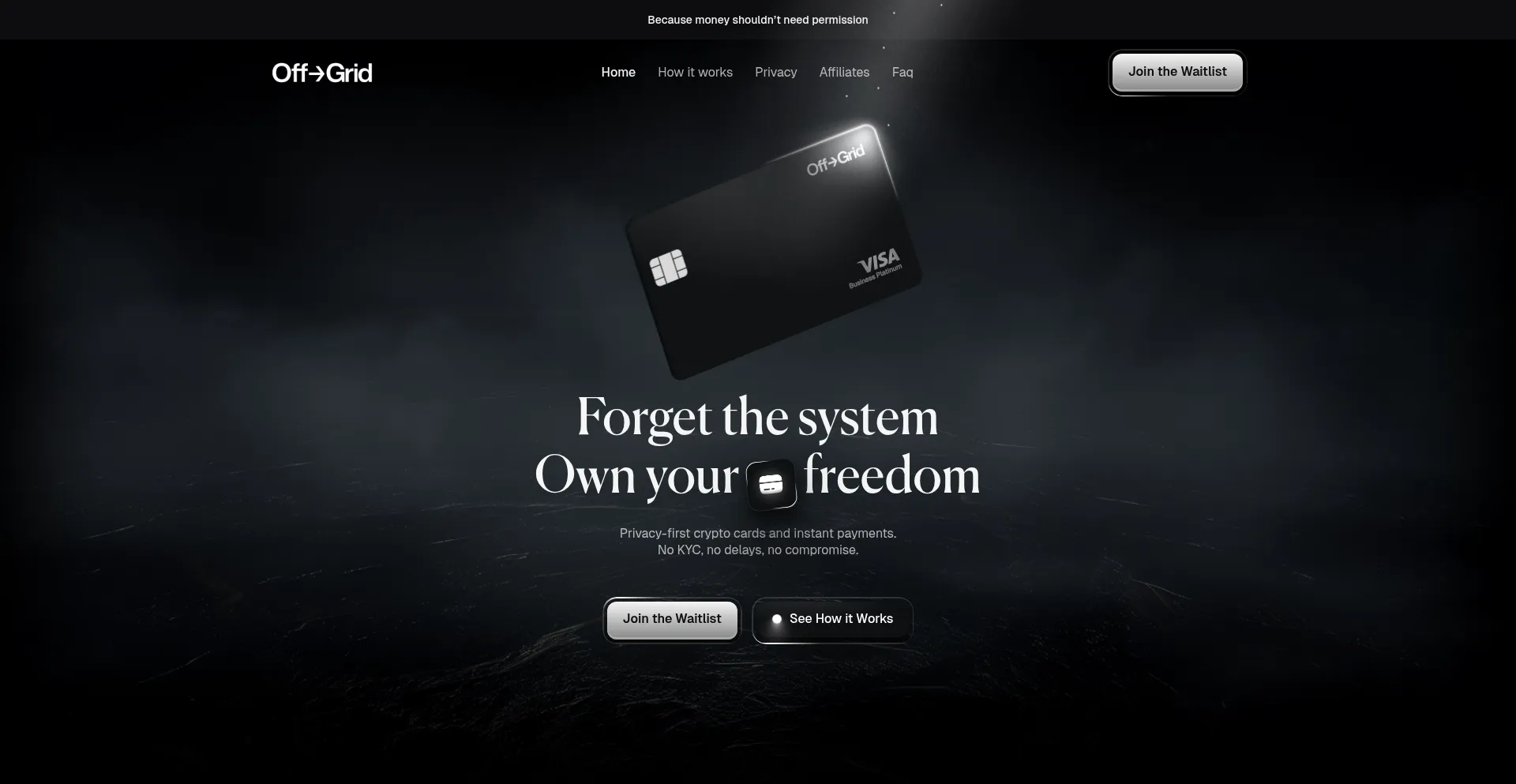 Privacy-first crypto cards and instant payments. No KYC, no delays, no compromise.