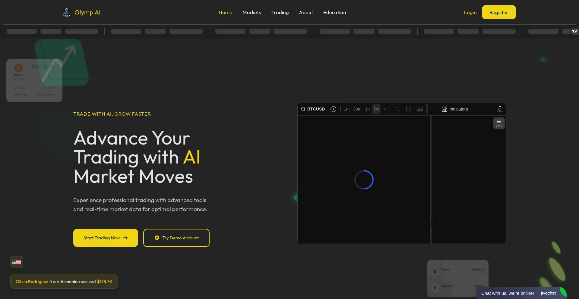 Professional trading platform with advanced AI-powered tools, real-time market data, and secure broker services. Start trading with Olymp AI Invest today.