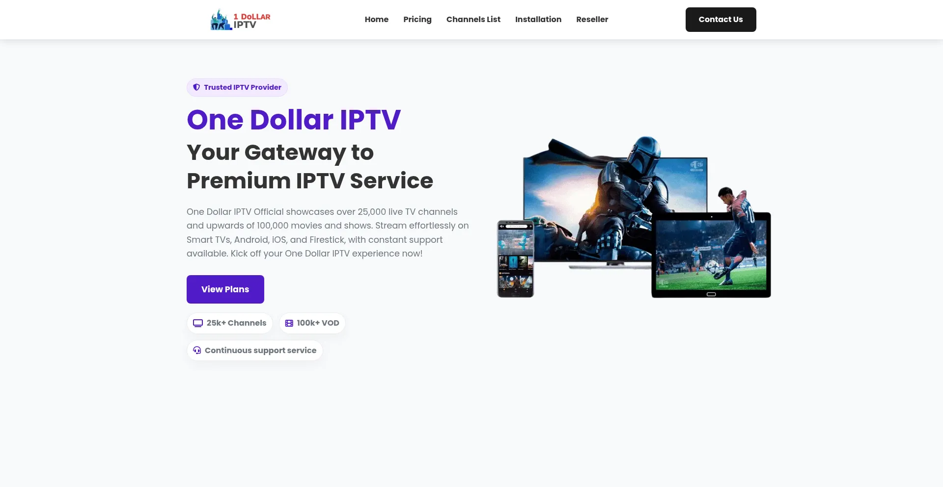 One Dollar IPTV, the #1 subscription service for live TV and on-demand movies. Enjoy HD and 4K streaming with smooth, reliable performance on all devices.