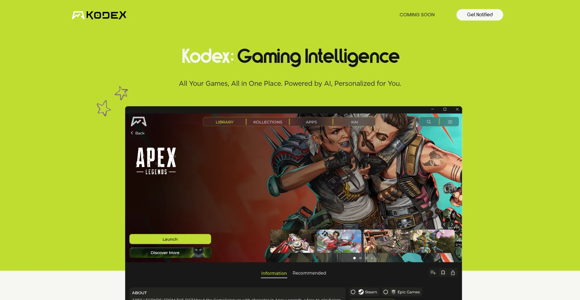Where gamers discover, play, and unite their games with AI-driven recommendations. Kodex also offers developers a seamless platform to manage and distribute.