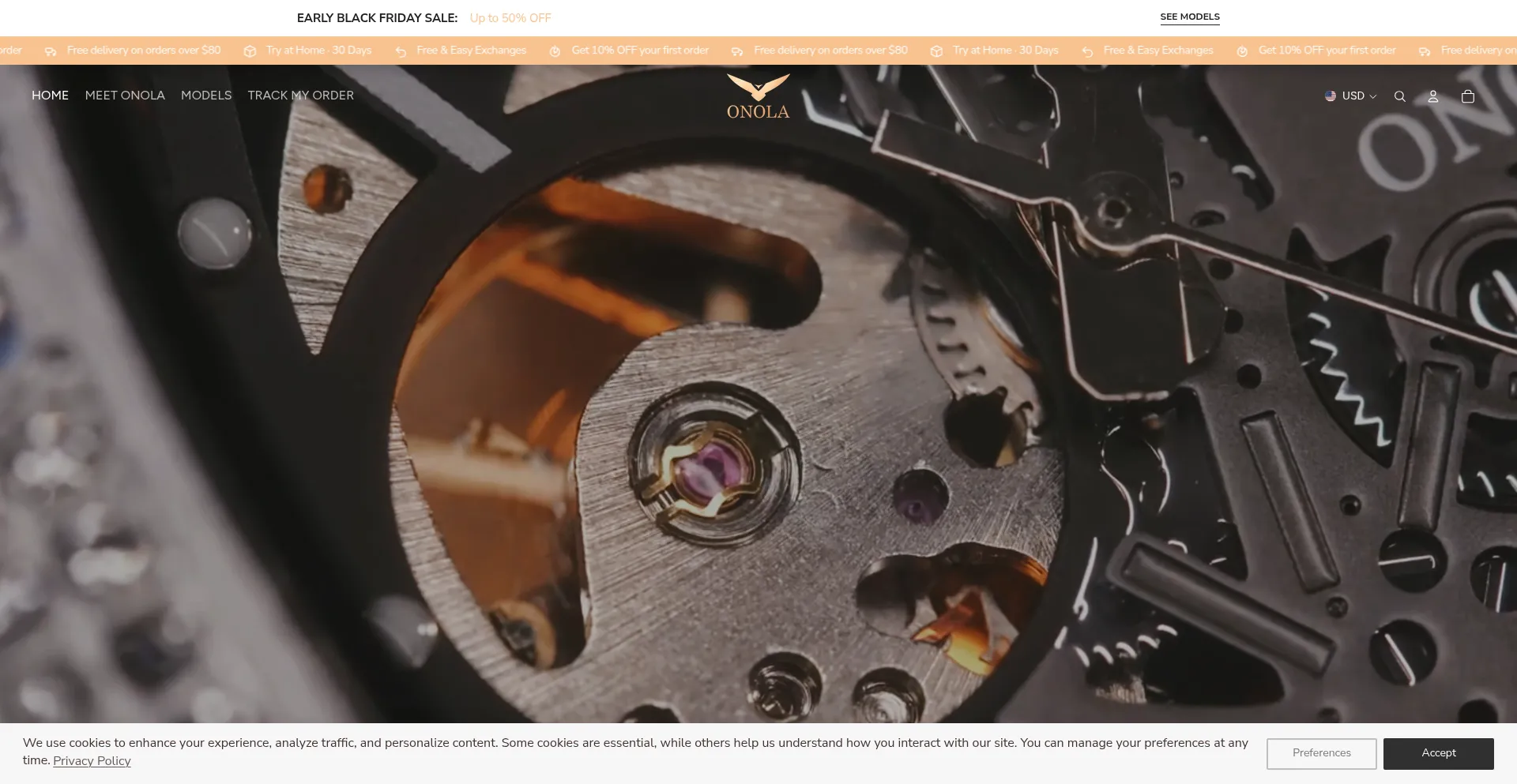 Die Website implementiert Cookie-Zustimmungsmechanismen in Compliance mit Datenschutzregulierungen wie DSGVO oder CCPA. Dies demonstriert, dass onolawatches.store Datenschutzstandards einhält und Benutzern Kontrolle über persönliche Datenerfassungspraktiken bietet.