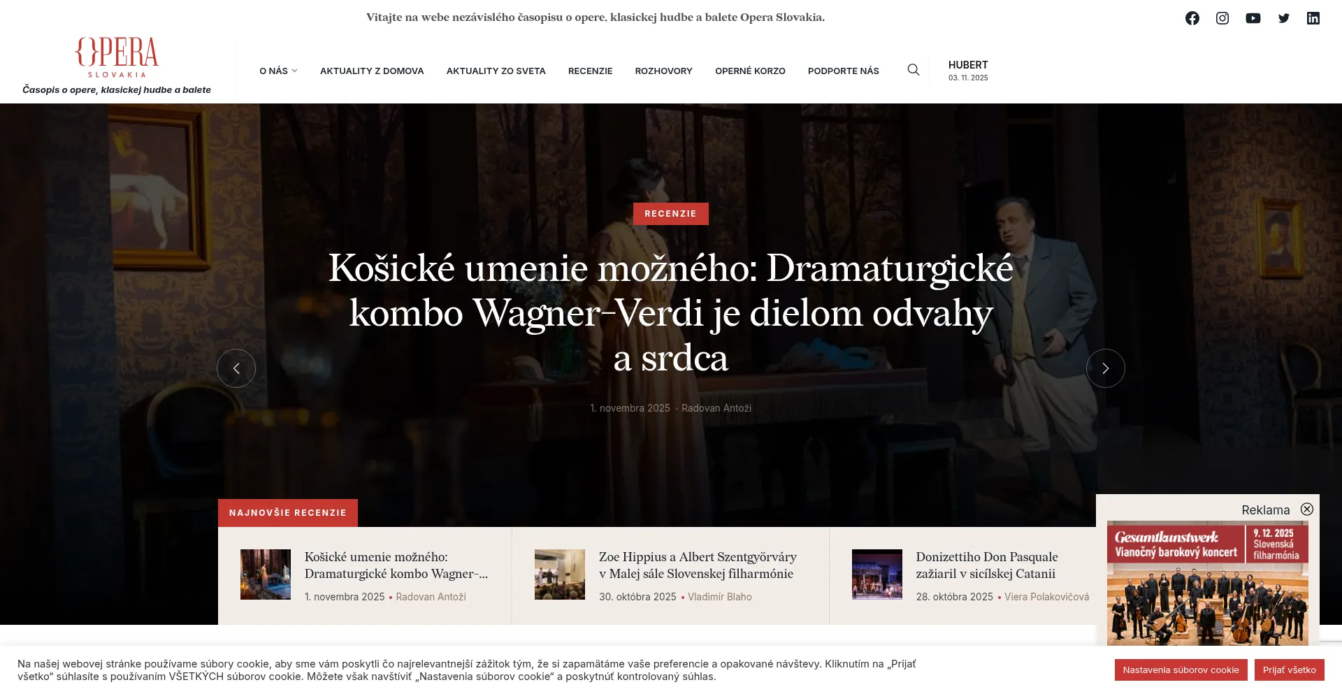 Prvý slovenský internetový časopis o opere, klasickej hudbe a balete prináša najnovšie recenzie, aktuálne spravodajstvo a exkluzívne rozhovory