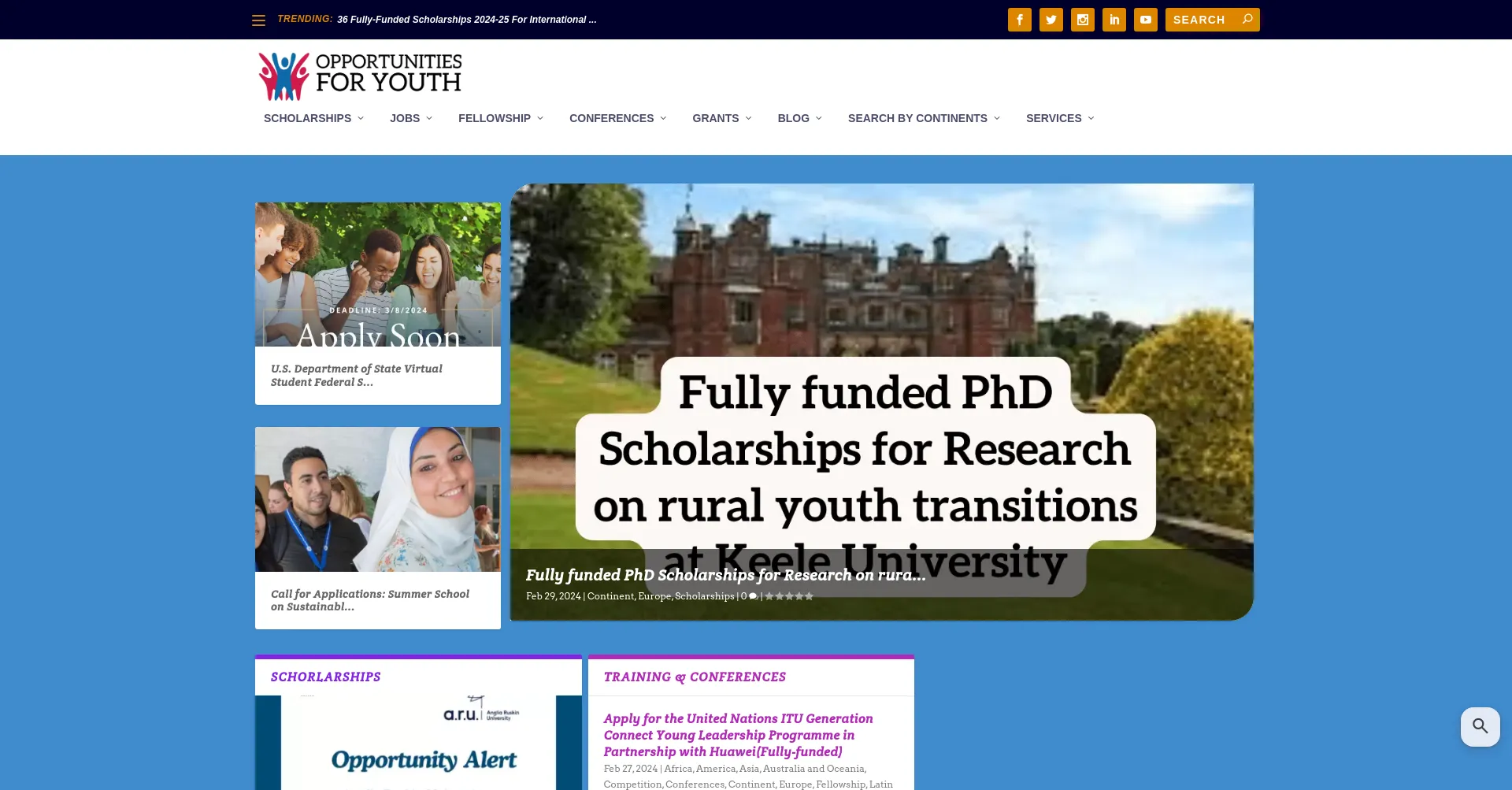 Opportunities for Youth ist eine Plattform, die Informationen zu verschiedenen Möglichkeiten für junge Menschen wie Stipendien, Praktika, Konferenzen, Wettbewerbe und mehr bietet.