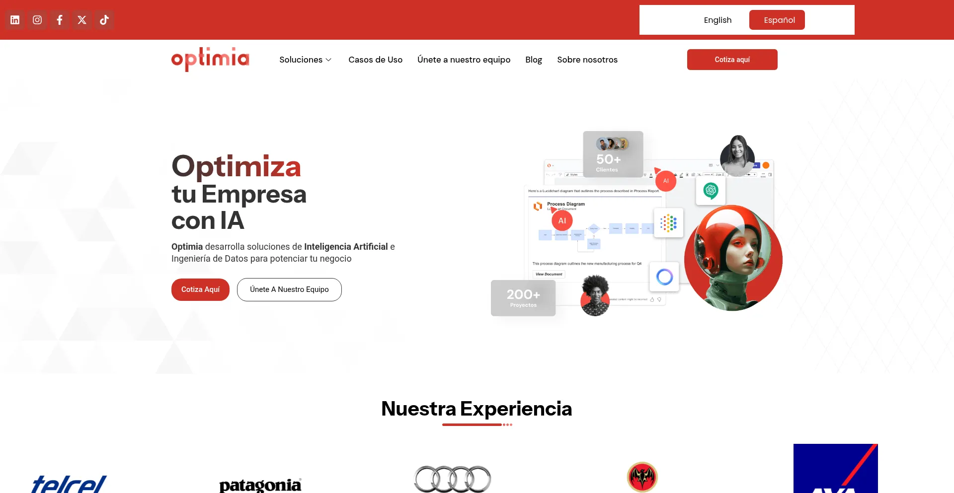 Die Anwesenheit von Social-Media-Links auf der Website deutet darauf hin, dass optimia.ai offizielle Konten auf Social-Media-Plattformen beibehält, was ein positiver Indikator für Glaubwürdigkeit und Engagement ist.