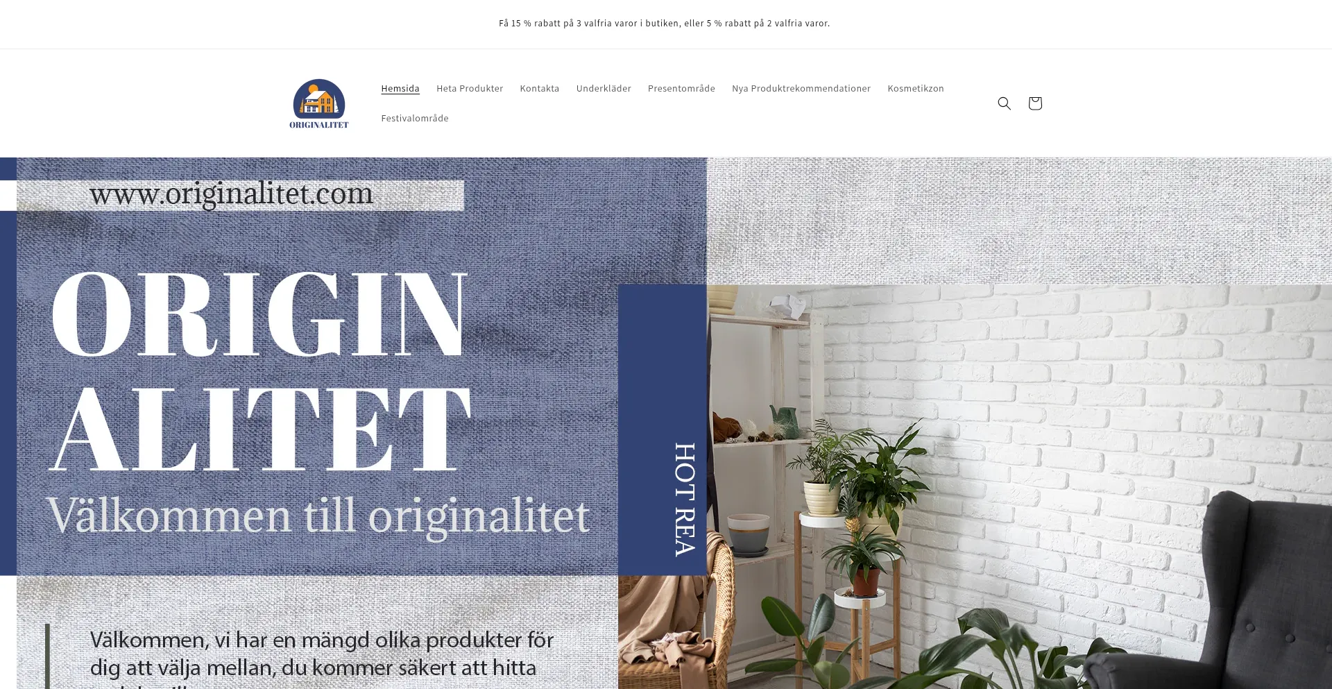 🎉Få 15 % rabatt på 3 valfria varor i butiken, eller 5 % rabatt på 2 valfria varor.
