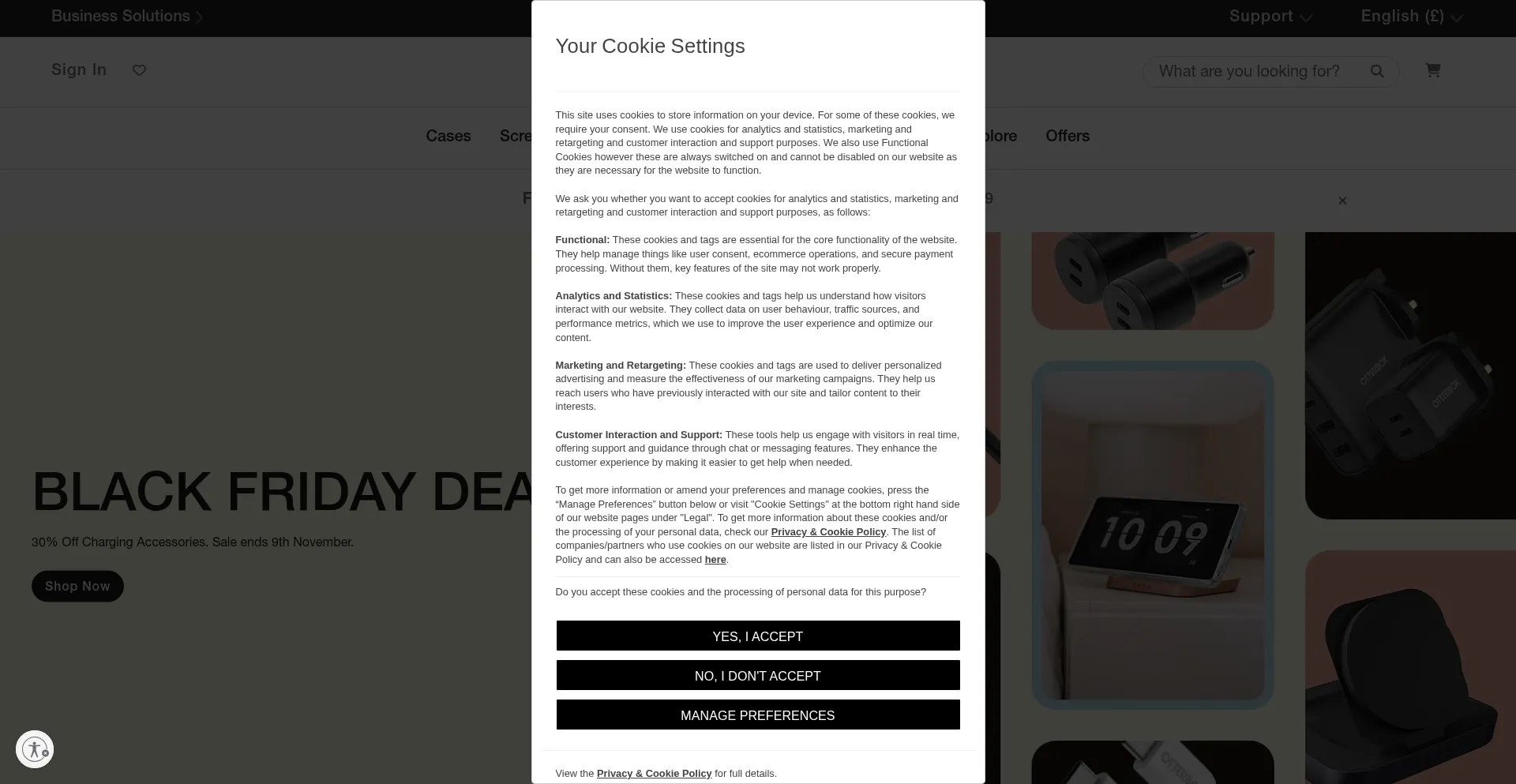 Die Website implementiert Cookie-Zustimmungsmechanismen in Compliance mit Datenschutzregulierungen wie DSGVO oder CCPA. Dies demonstriert, dass otterbox.co.uk Datenschutzstandards einhält und Benutzern Kontrolle über persönliche Datenerfassungspraktiken bietet.