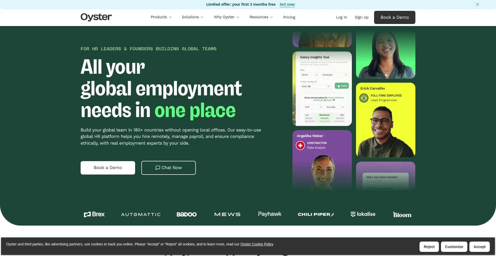 Hire, pay, and manage teams globally with Oyster. Streamline payroll, ensure compliance, and simplify HR in +180 countries—all on one platform.