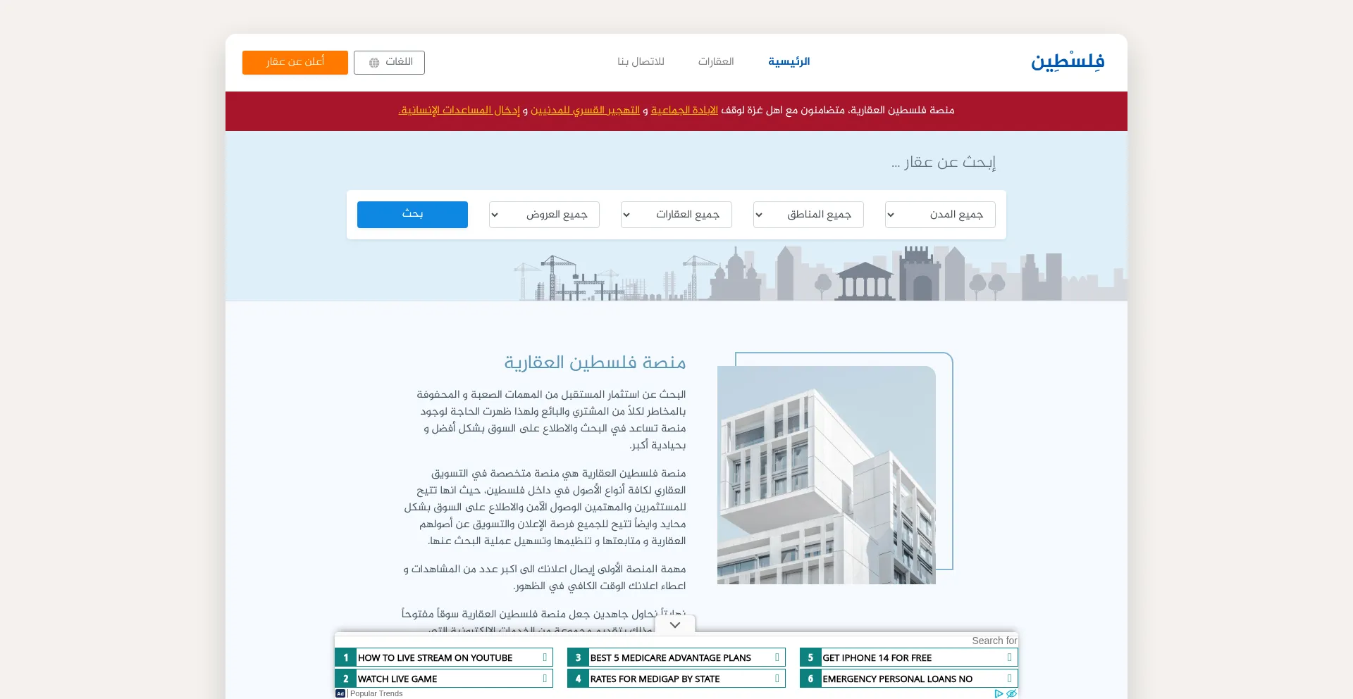 منصة فلسطين العقارية - عقارات للبيع والإيجار