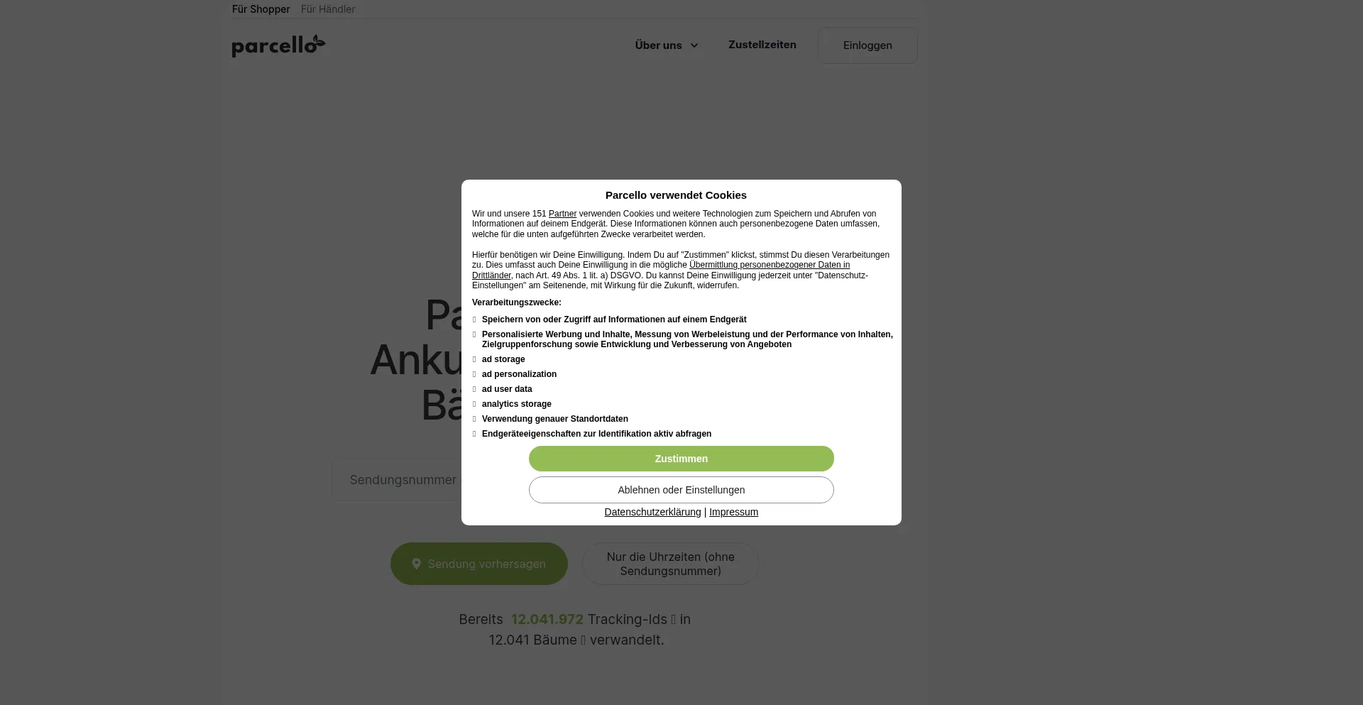 Erfahre sofort wann dein Paket ankommt → Sendungsverfolgung, Ankunftsprognose, Verlauf auf der Karte → Über 11 Millionen Pakete vorhergesagt mit parcello.org