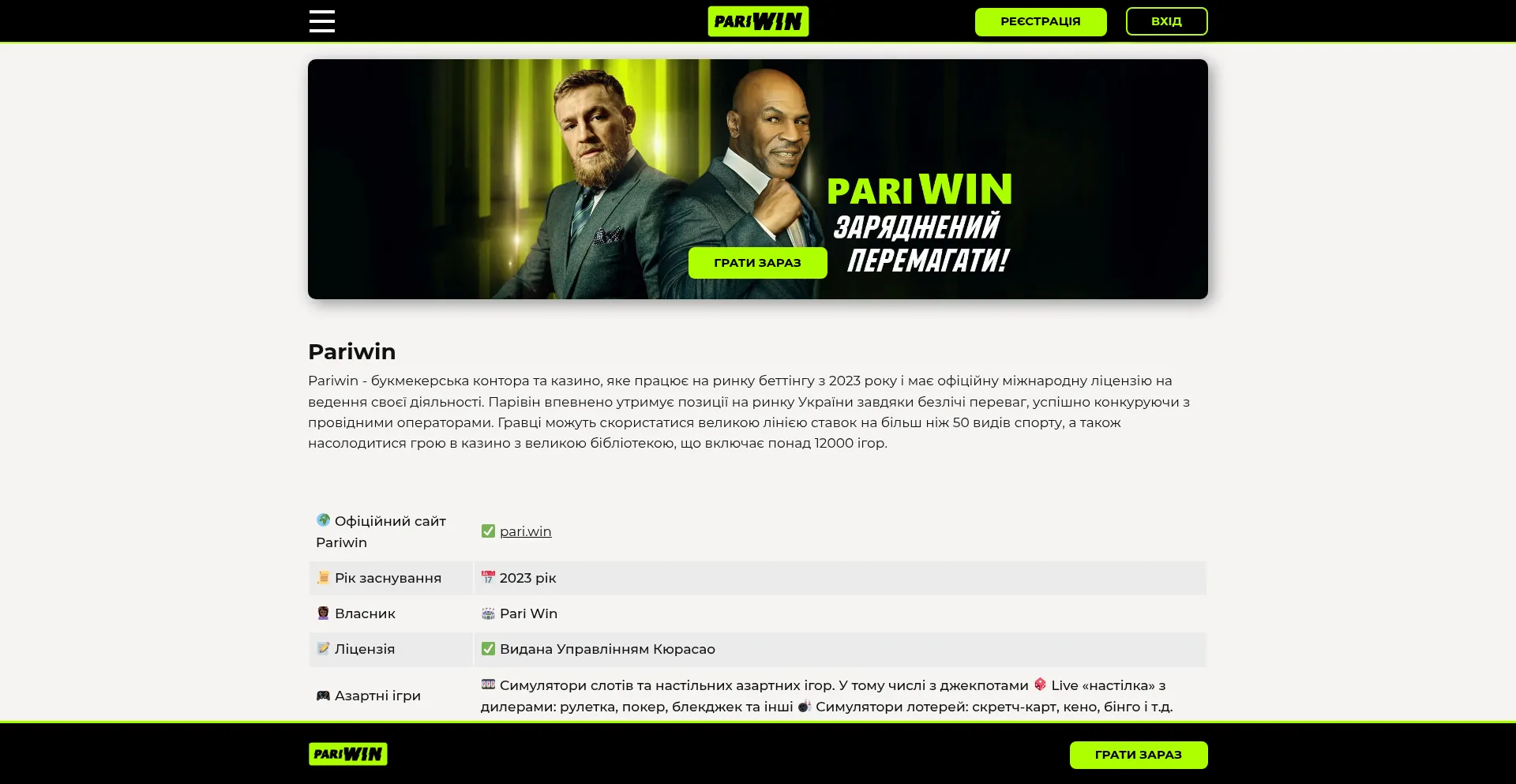Букмекерська контора та казино PariWin ☝ Найкращі коефіцієнти та бонуси для нових гравців ⚡️ на оф...