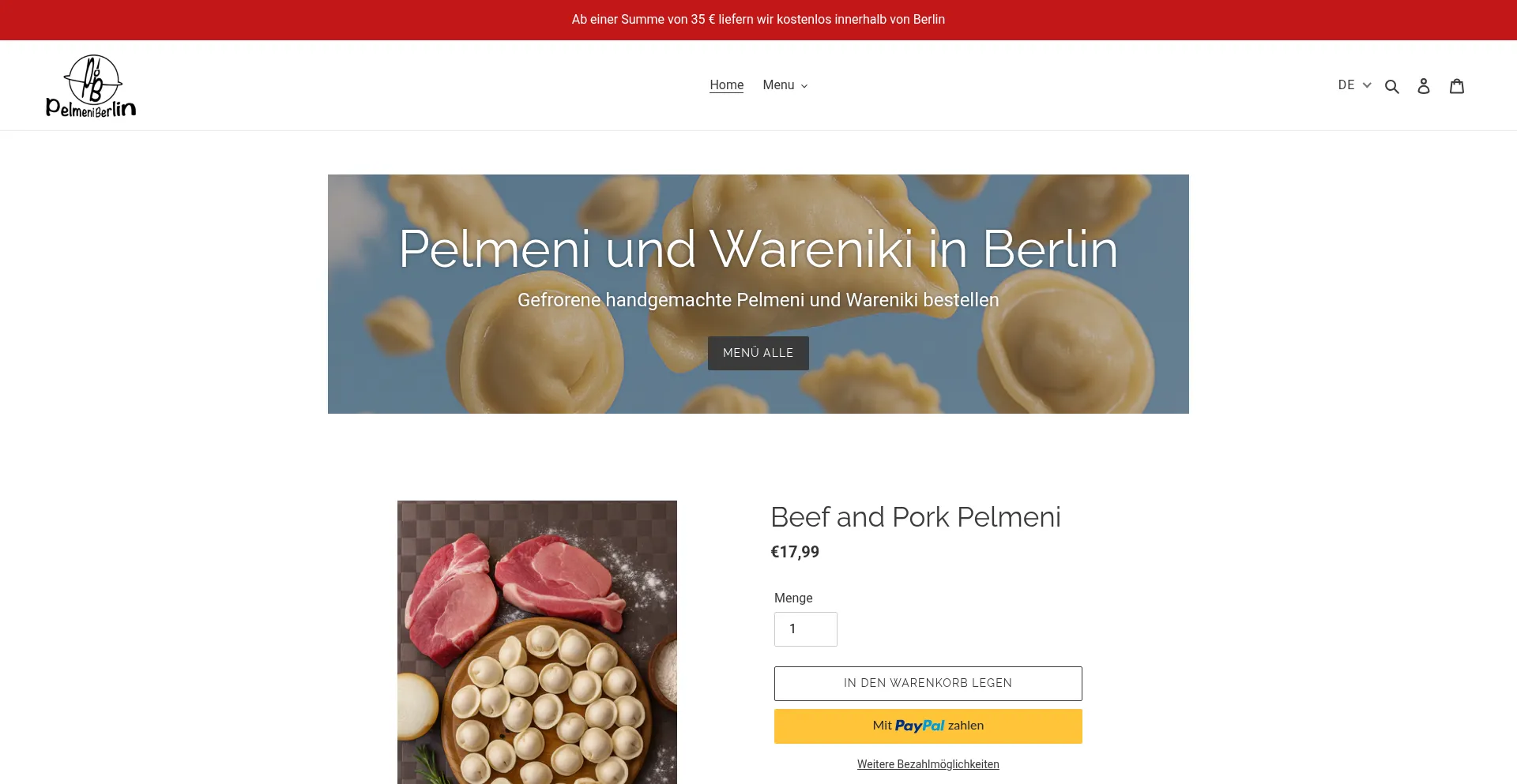 Frozen Russian handmade dumplings. Free delivery in Berlin. Check our menu.