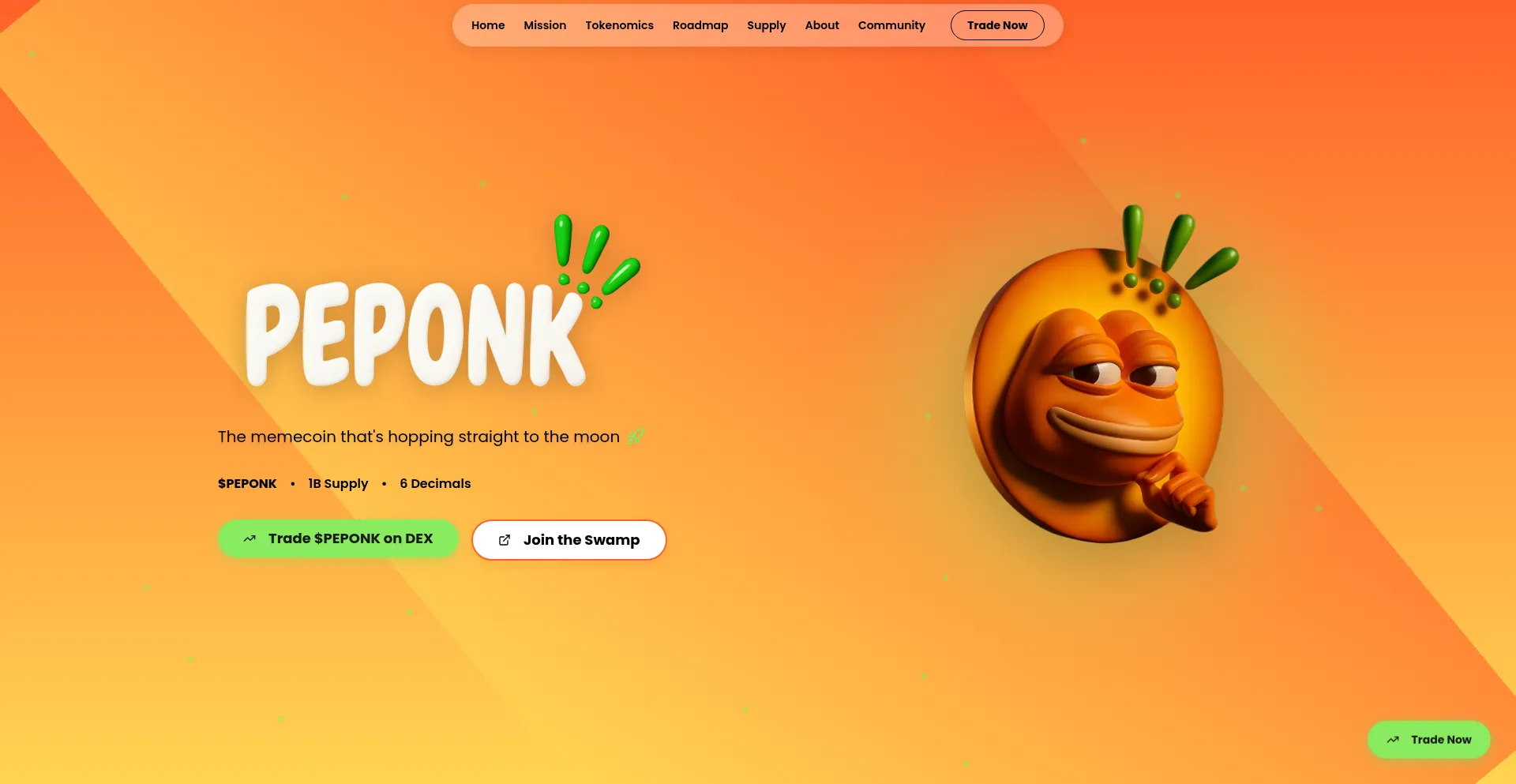 PEPONK is a memecoin built on Solana that values community, steady growth, and honest communication. Join the swamp and hop to the moon with us!