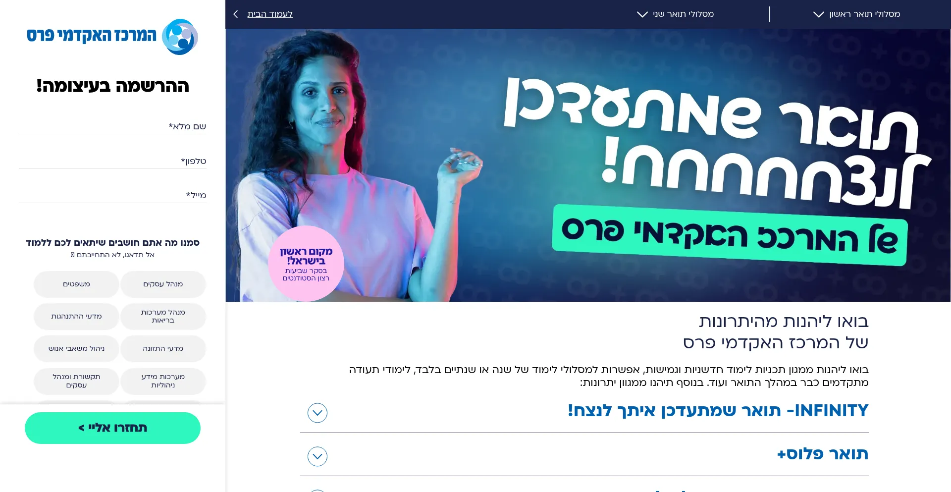 המרכז האקדמי פרס | בואו להתאהב בקריירה