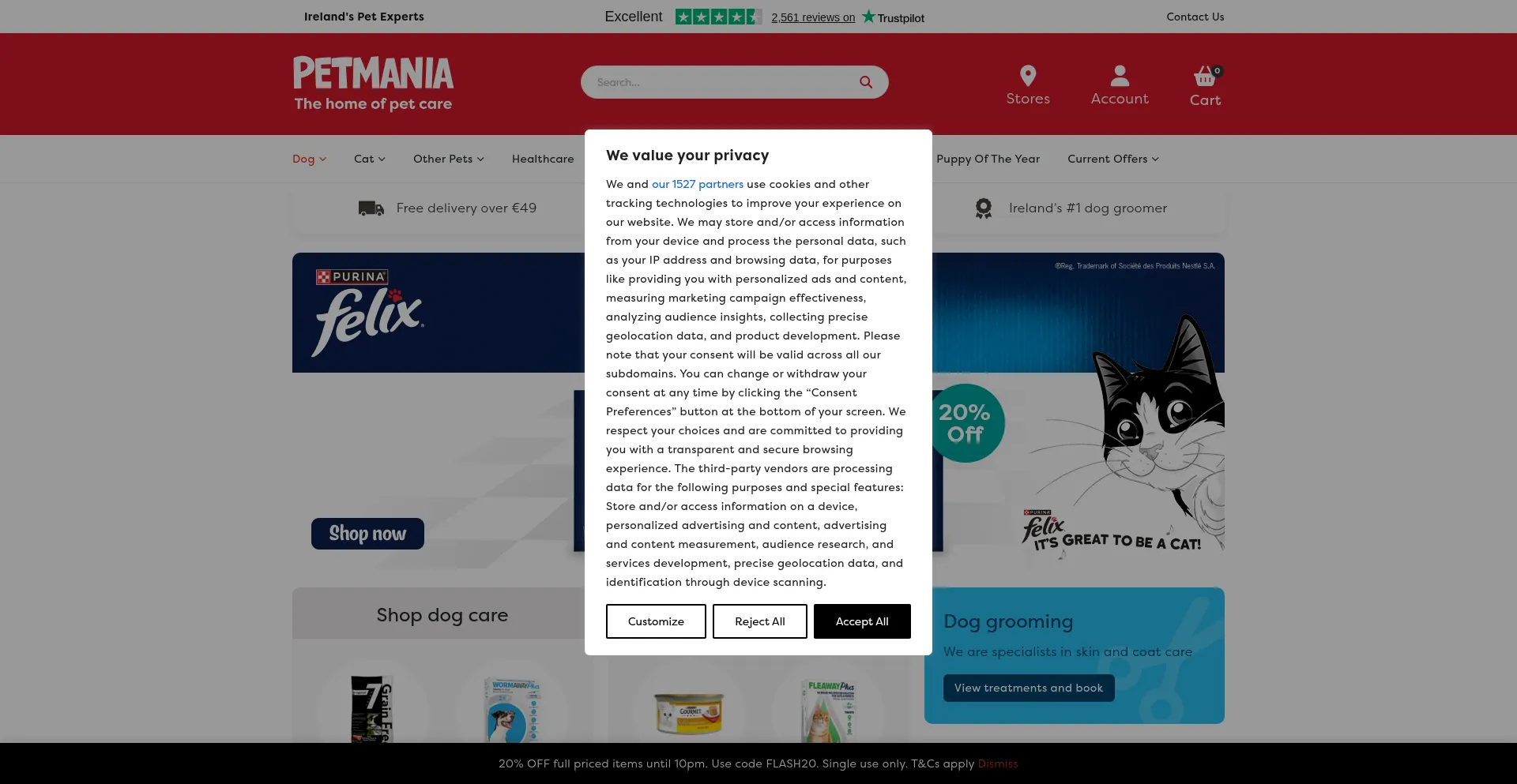 Die Website implementiert Cookie-Zustimmungsmechanismen in Compliance mit Datenschutzregulierungen wie DSGVO oder CCPA. Dies demonstriert, dass petmania.ie Datenschutzstandards einhält und Benutzern Kontrolle über persönliche Datenerfassungspraktiken bietet.