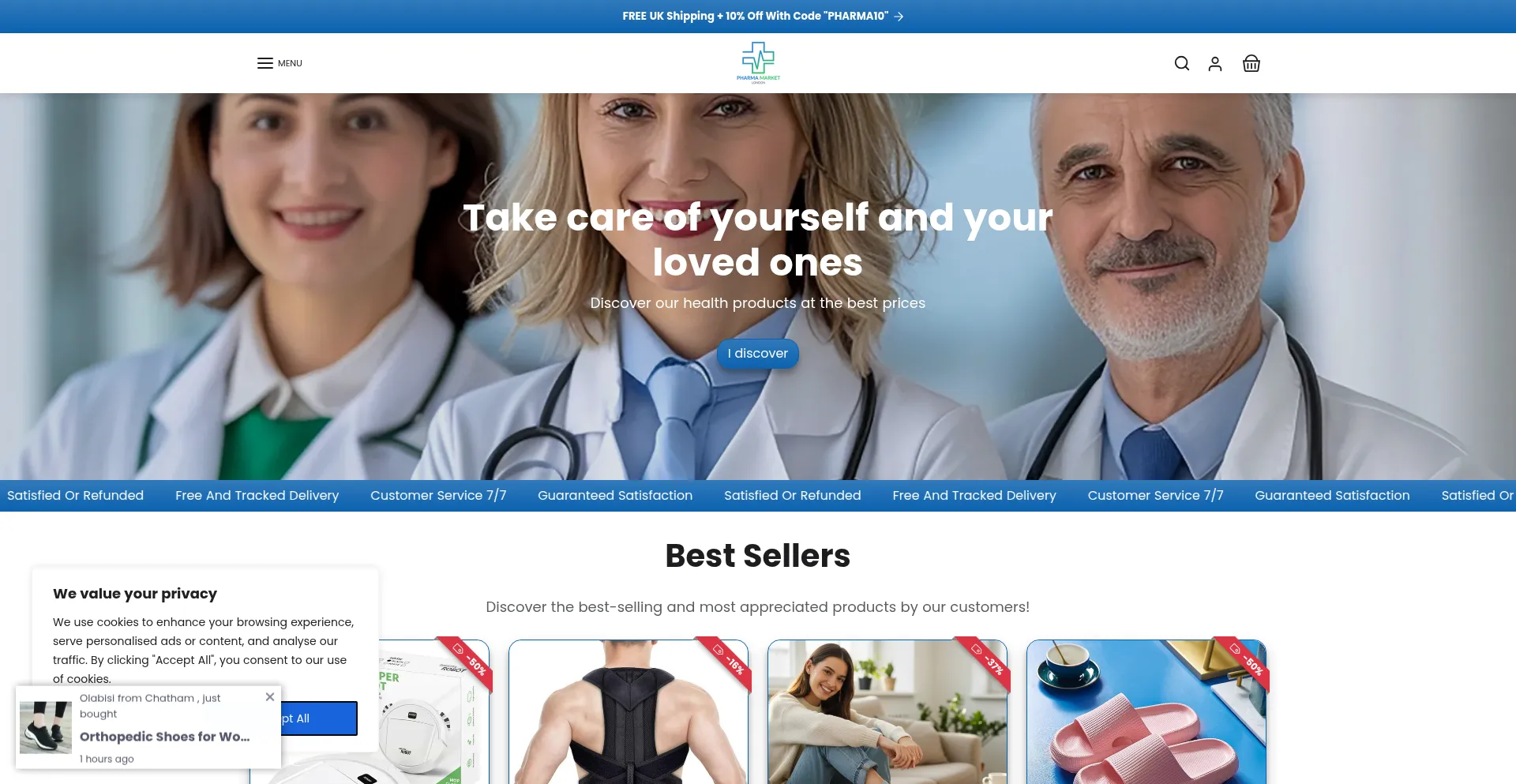 Shopping, Reliable Payment Method, Uses Free eCommerce Engine, Drugstore, Sports, Shopify Platform, Google Tag Manager, Animate.css Framework, AI-generated Text
