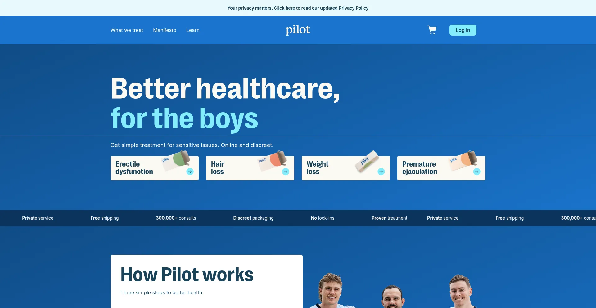 Get simple and discreet treatment for ED, PE, hair loss, weight loss and more. Start your consult online today.