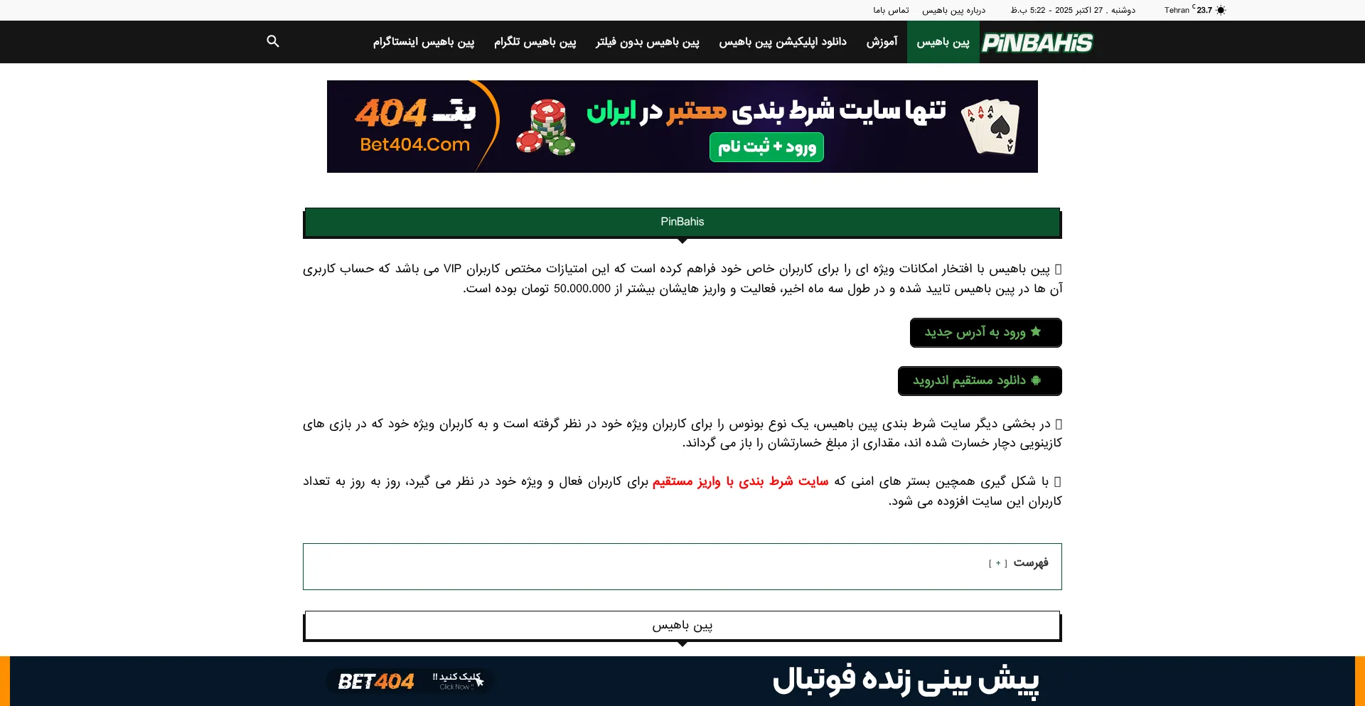سایت پین باهیس بت PinBahis Bet (اپلیکیشن پینباهیس) از قدیمی ترین ها در عرصه شرط بندی و پیش بینی که در سال ...