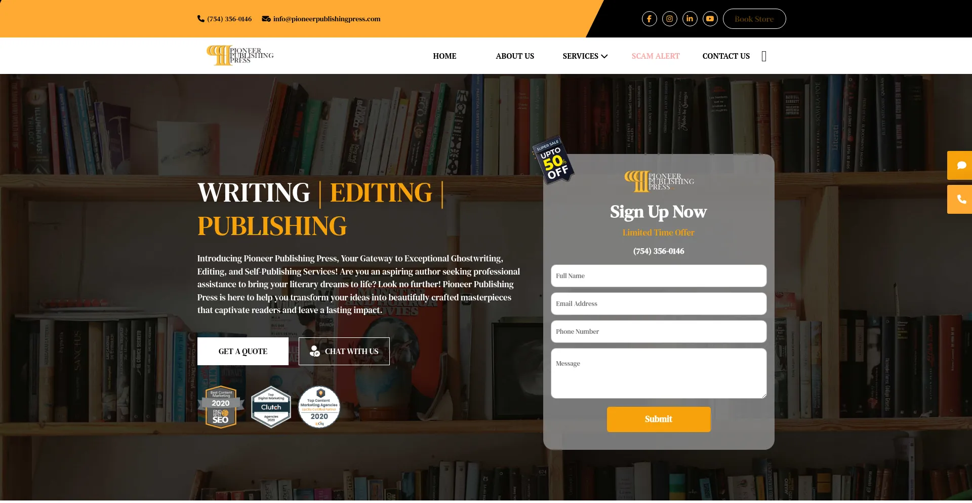 Die Anwesenheit von Social-Media-Links auf der Website deutet darauf hin, dass pioneerpublishingpress.com offizielle Konten auf Social-Media-Plattformen beibehält, was ein positiver Indikator für Glaubwürdigkeit und Engagement ist.