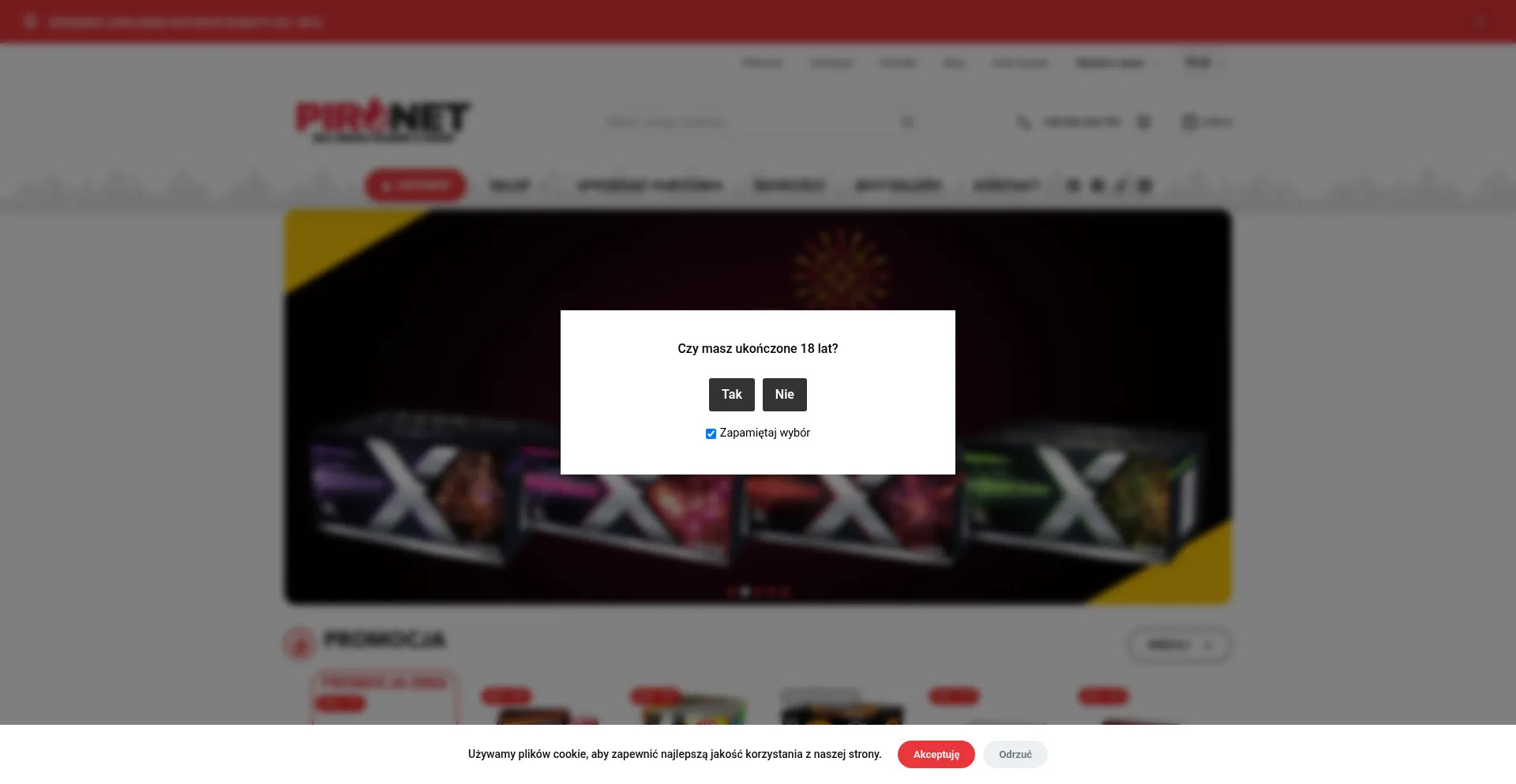 Weryfikacja wieku - Sklep internetowy z fajerwerkami Pironet.pl