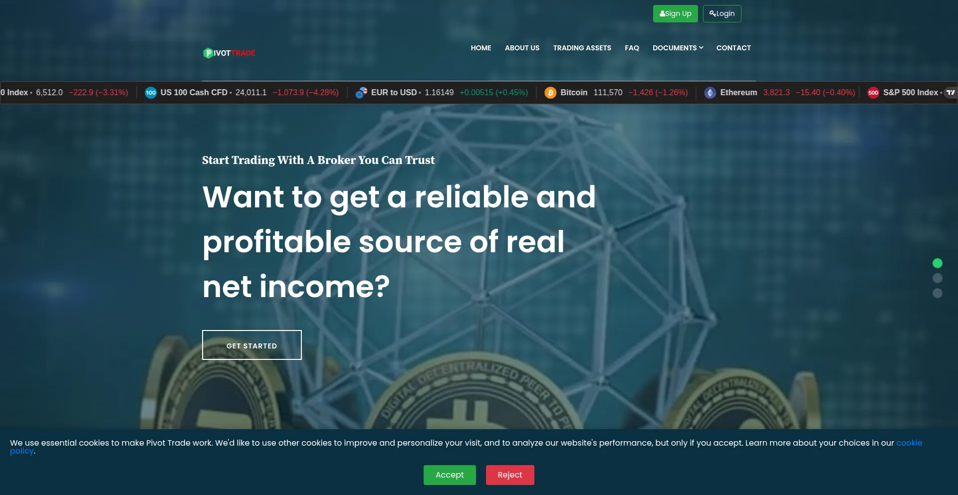 Pivot Trade - the most convenient online trading interface. <br> Instant access to trade options more than 150 assets of currencies, cryptocurrencies and companies shares.