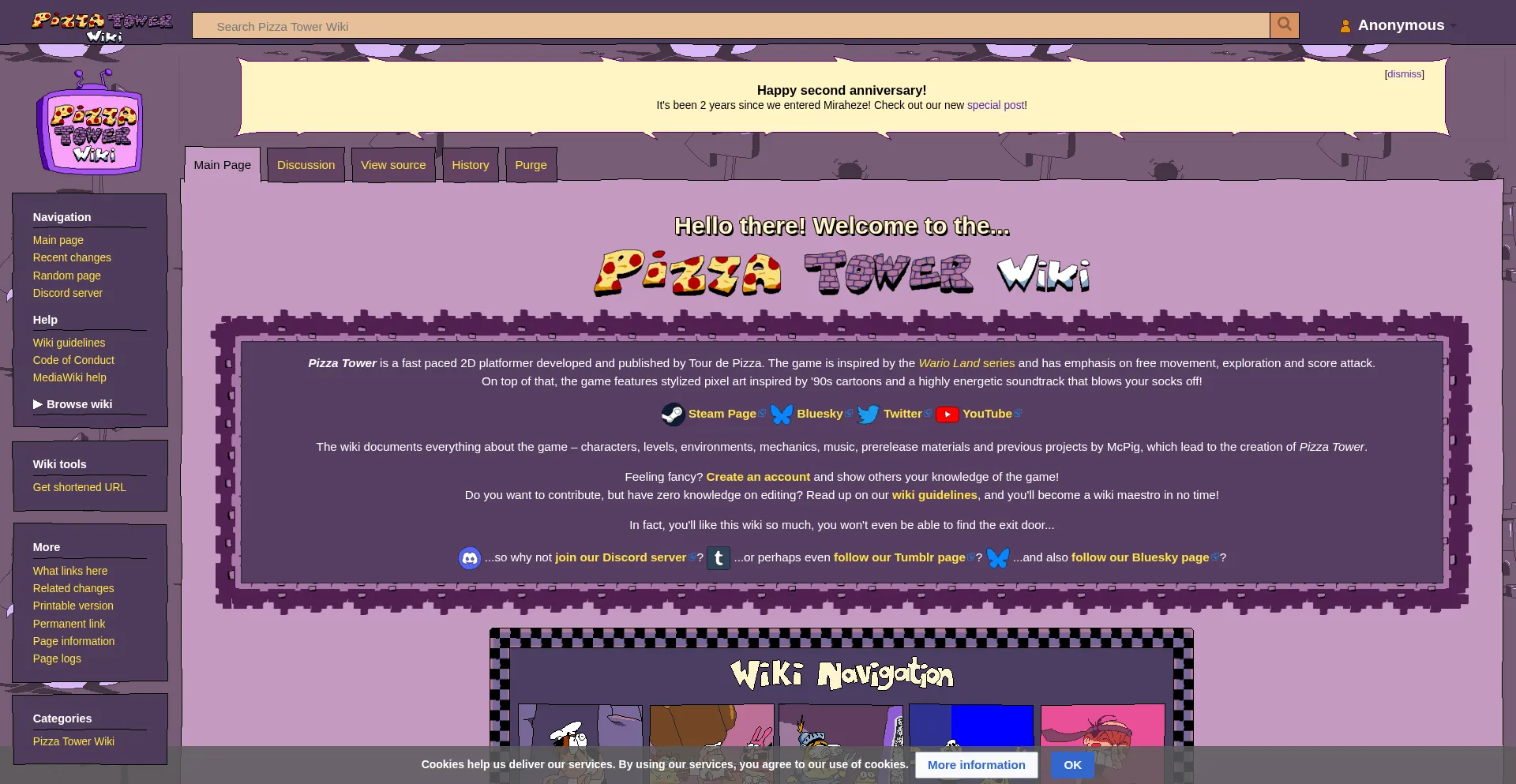 pizzatowerwiki.tumblr.com twitter.com en.wikipedia.org pizzatower.wiki www.youtube.com bsky.app meta.miraheze.org static.wikitide.net discord.com store.steampowered.com +5 mehr