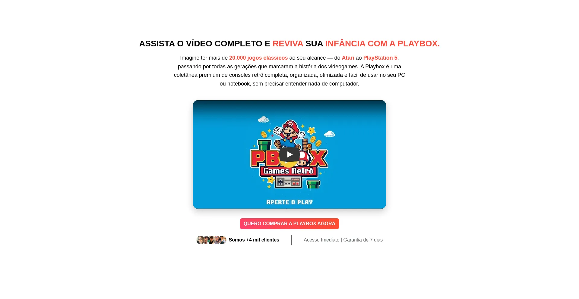 Reviva os melhores momentos da sua infância com a Playbox – mais de 20.000 jogos retrô de mais de 40 consoles no seu PC, com performance, suporte e nostalgia incomparáveis.