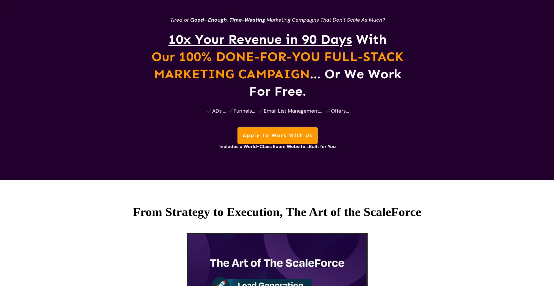 Tired of Good- Enough, Time-Wasting Marketing Campaigns That Don’t Scale As Much?10x Your Revenue in 90 Days With Our 100% Done-For-You Full-Stack Marketing Campaign... Or We ...