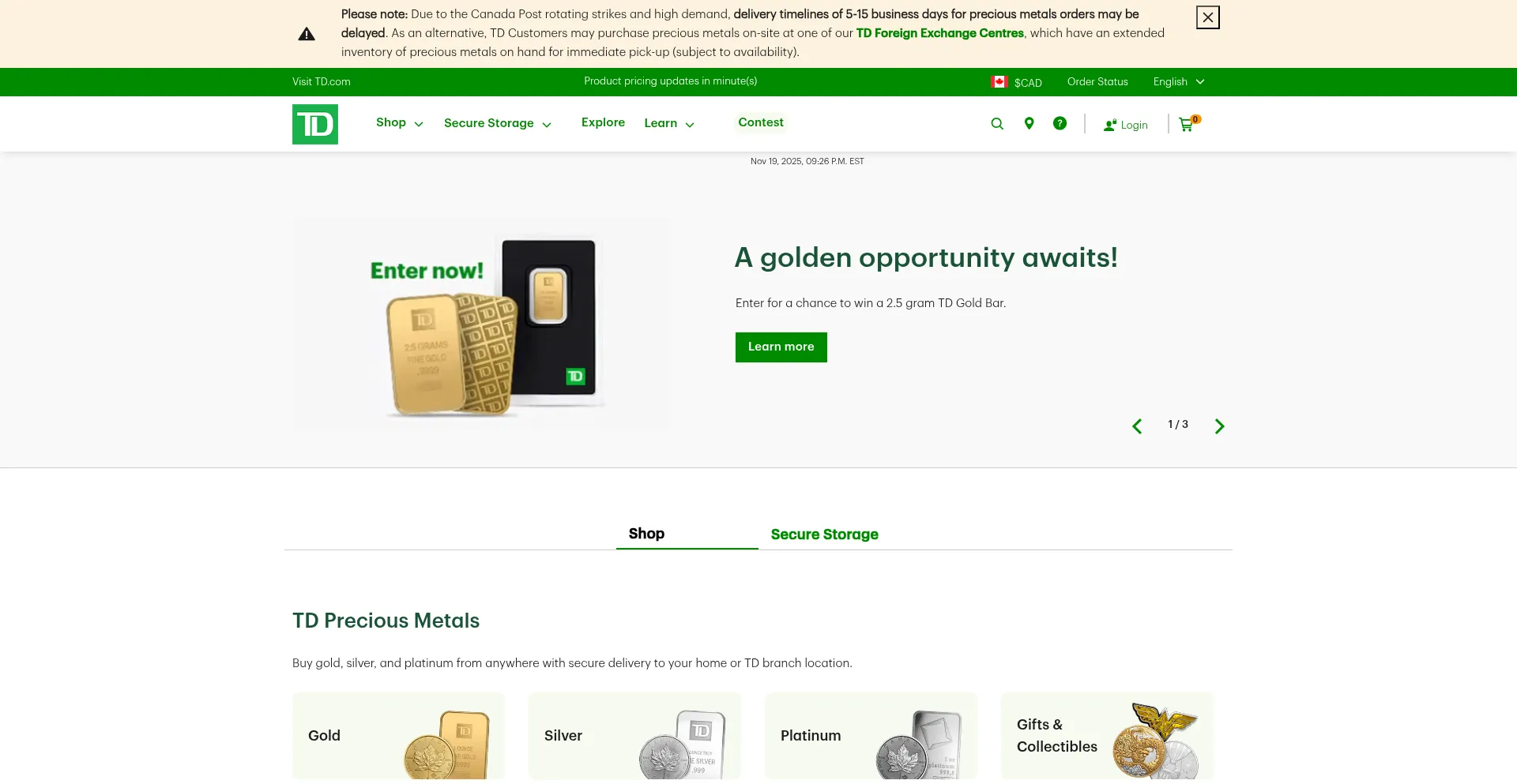 Buy Gold, Silver and Platinum Bullion, Coins, and Bars Online | TD Precious Metals