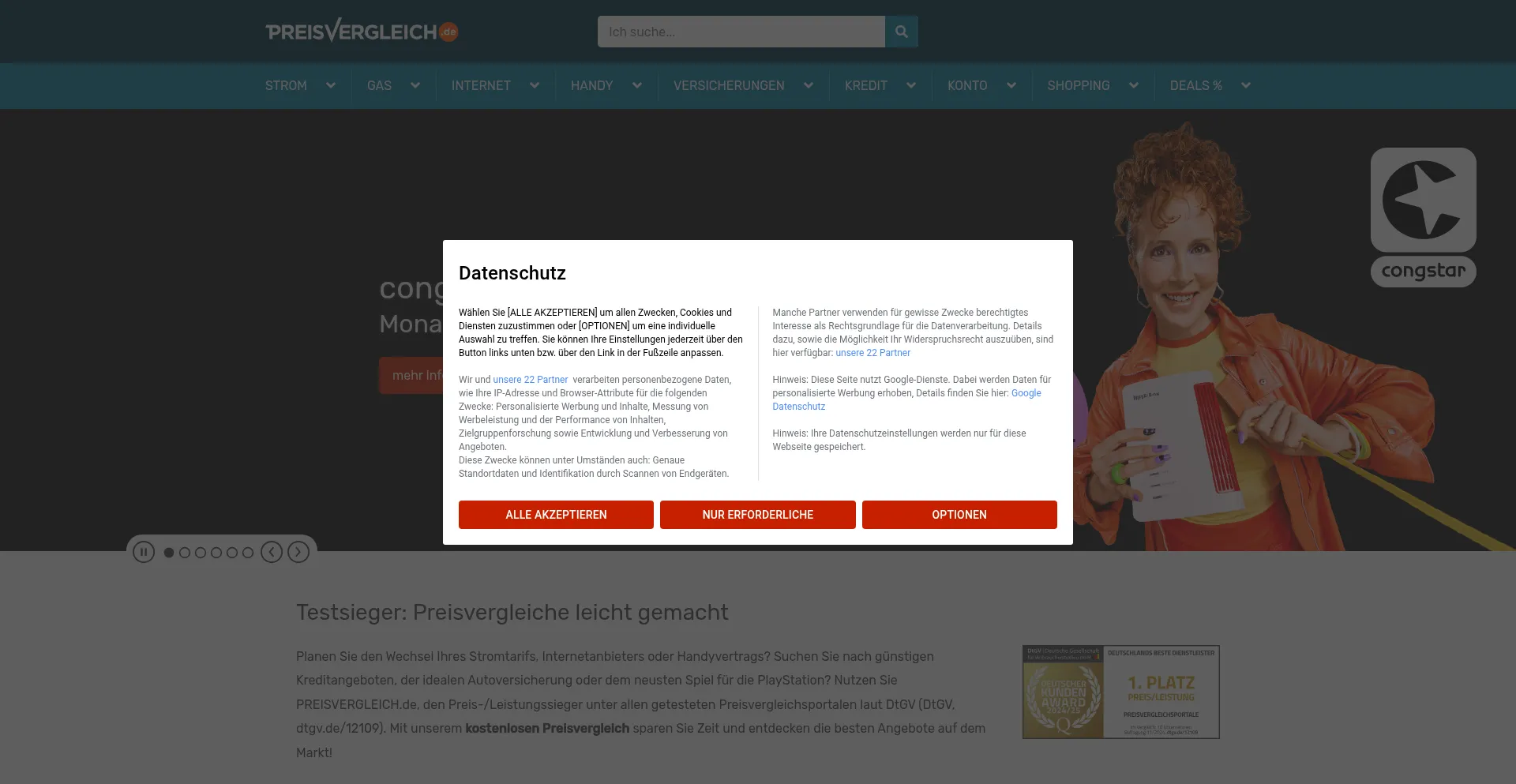 Sparen Sie mit unseren Vergleichsrechnern für Strom, Gas, Internet, Mobilfunk, Versicherungen, Kredit & mehr – Ausgezeichnet vom DtGV 2024/2025 ➤ Die besten Preise finden ...