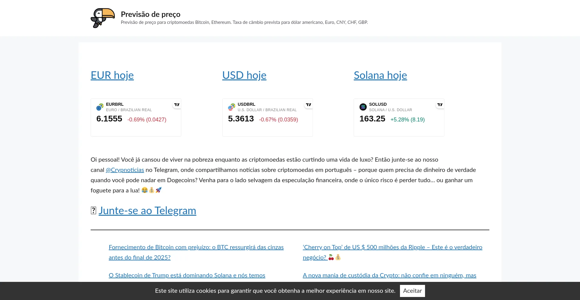 Previsão de preço – Previsão de preço para criptomoedas Bitcoin, Ethereum. Taxa de câmbio prevista para dólar americano, Euro, CNY, CHF, GBP.
